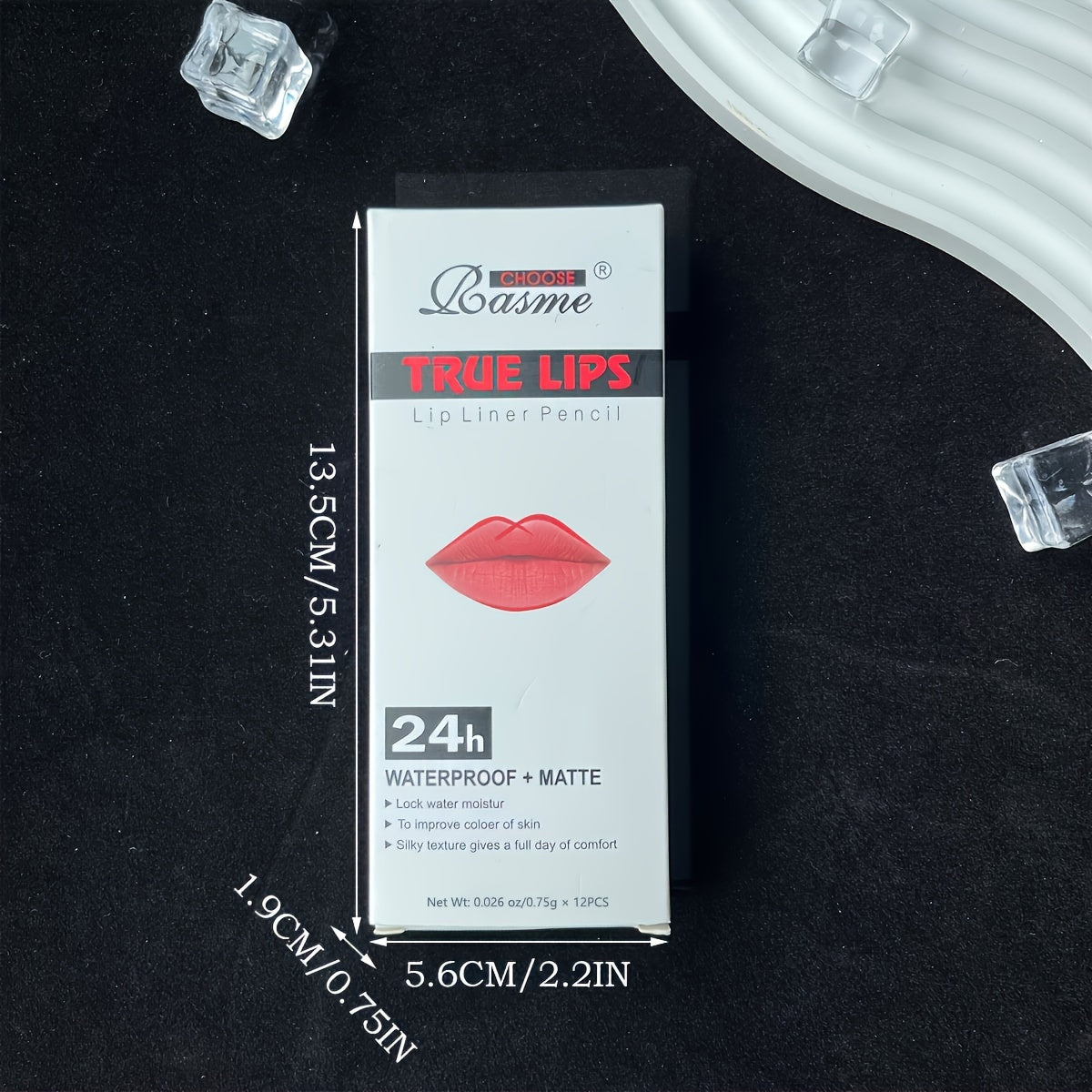 12pc Matte Lip Liner Pencil Set Long-Lasting Natural Red Tones for All Skin Types