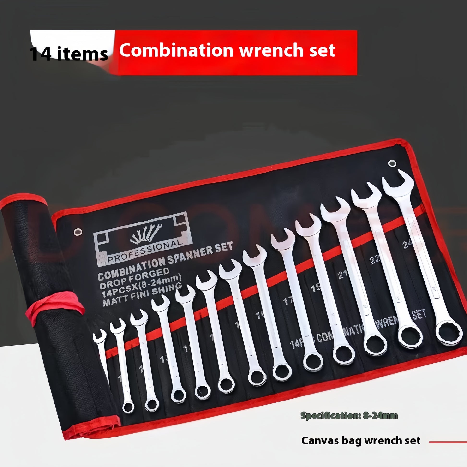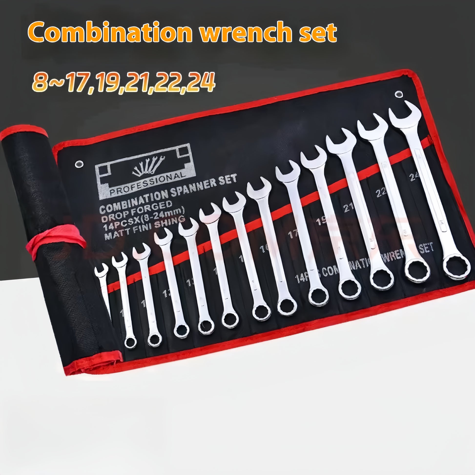 14-Piece Steel Hand Tool Set with Extended Ratchet Wrench and Dual-End Hex and Flat Heads