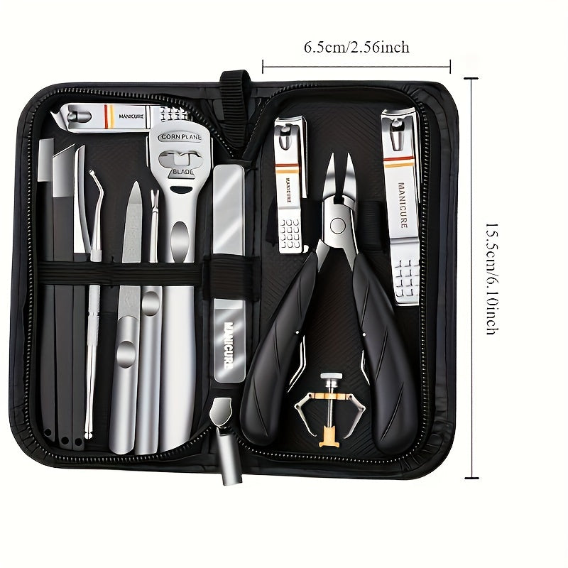 14-Piece Stainless Steel Pedicure Kit with Storage Case for Men and Women