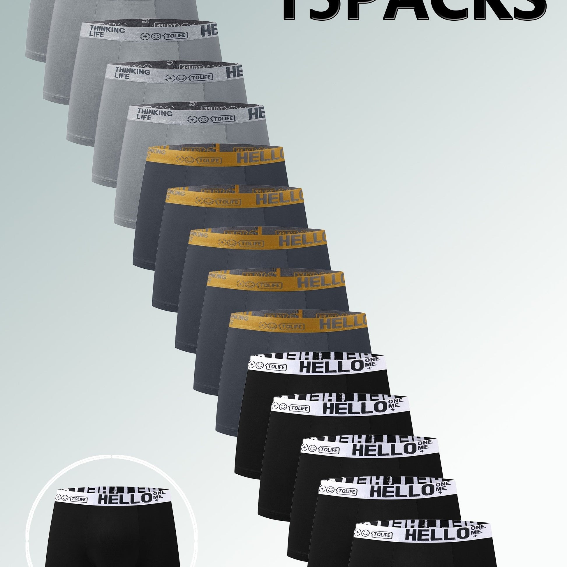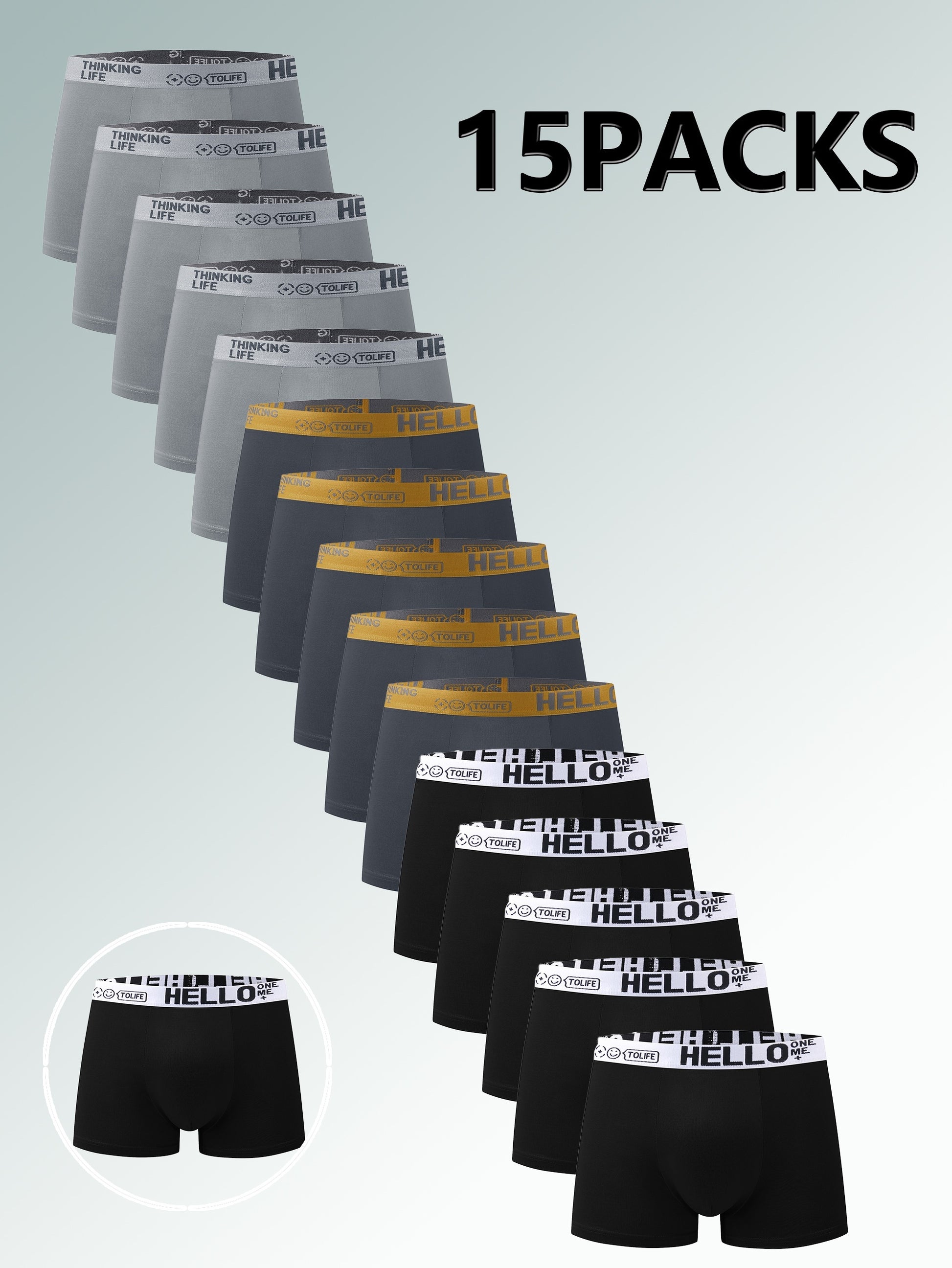 Men's Boxer Briefs Set of 15 Breathable Polyester Spandex Solid Colors Comfortable Fit for Teens