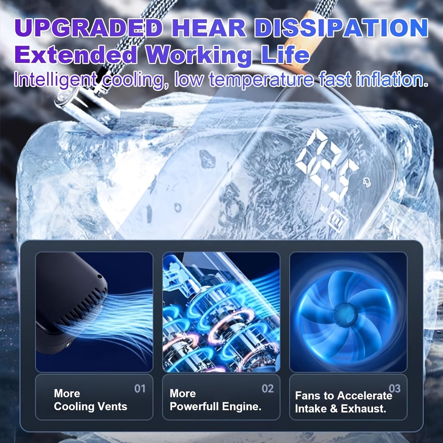 150W Portable Car Tire Inflator with LED Light USB Rechargeable Safe and Efficient