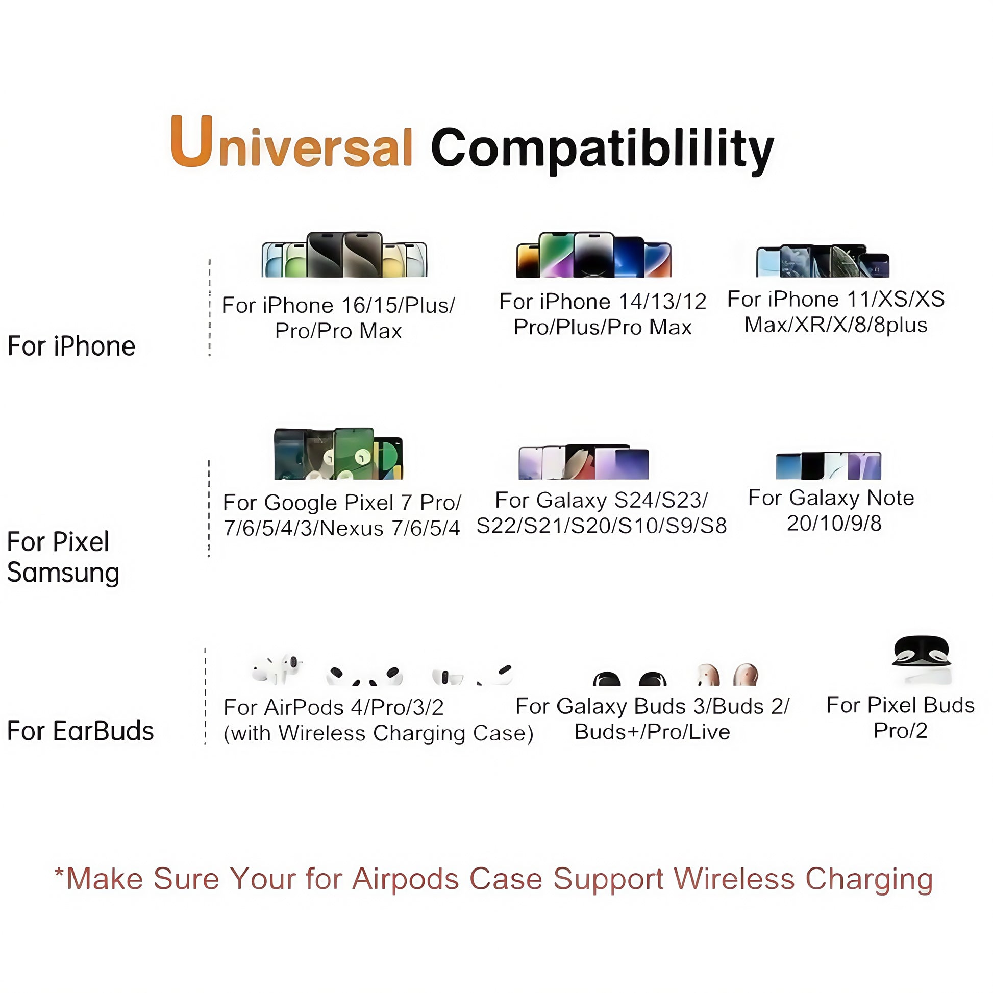 15W Fast Wireless Charger for iPhone and Galaxy Series Slim Design Bedside Office Compatible