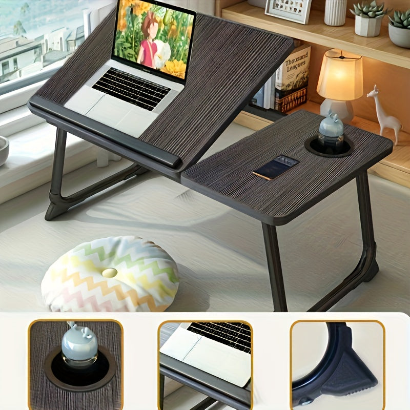 Adjustable Laptop Table with Cup Holder, Anti-Slip Strip, Foldable, White or Black