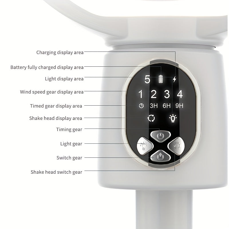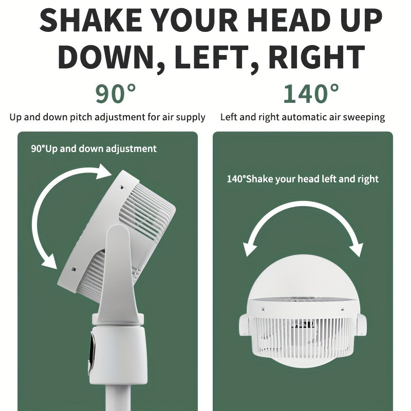 Rechargeable Floor Fan with Digital Display Oscillating Shaking Head 5 Speeds 3 Modes Timer Height Adjustable
