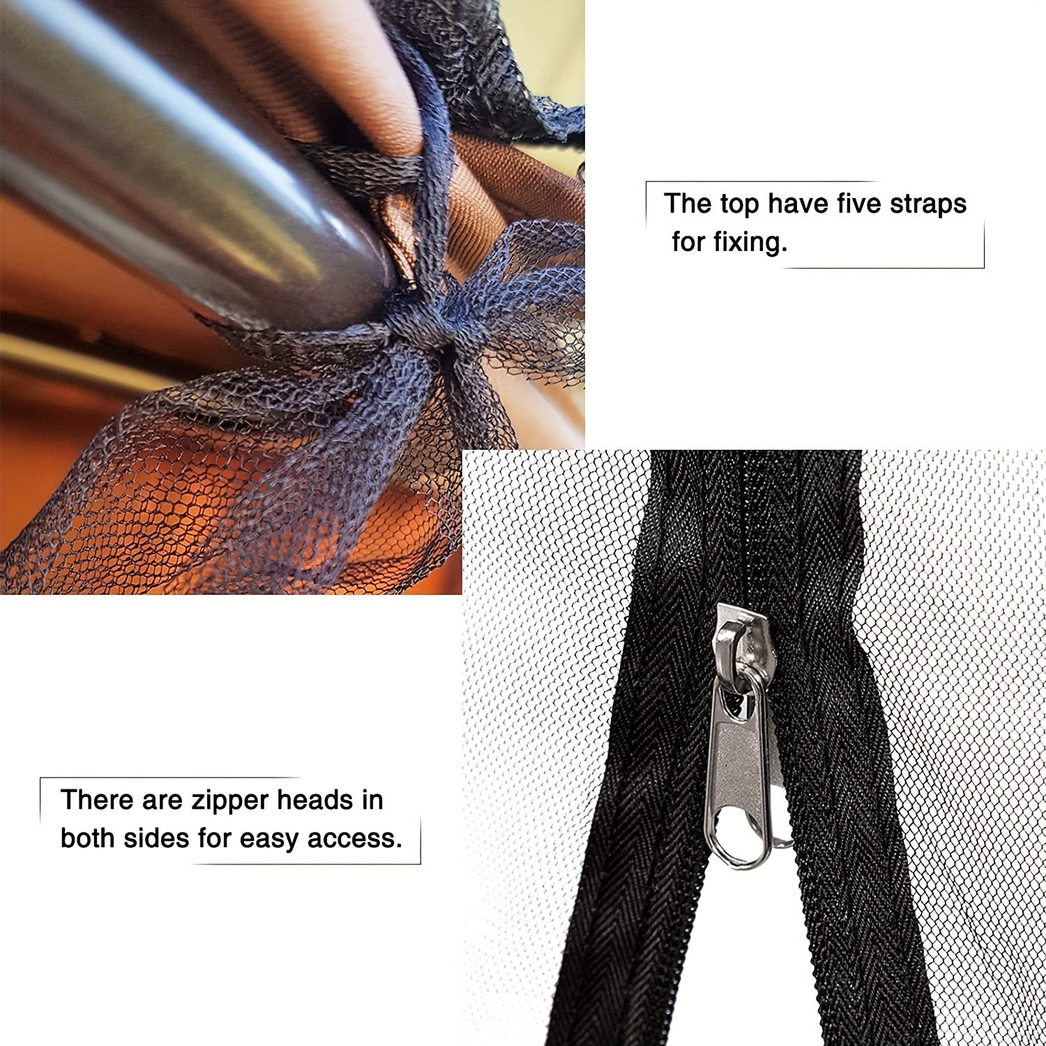 Black Patio Swing Chair Cover with Mosquito Net Waterproof Adjustable 124-203cm