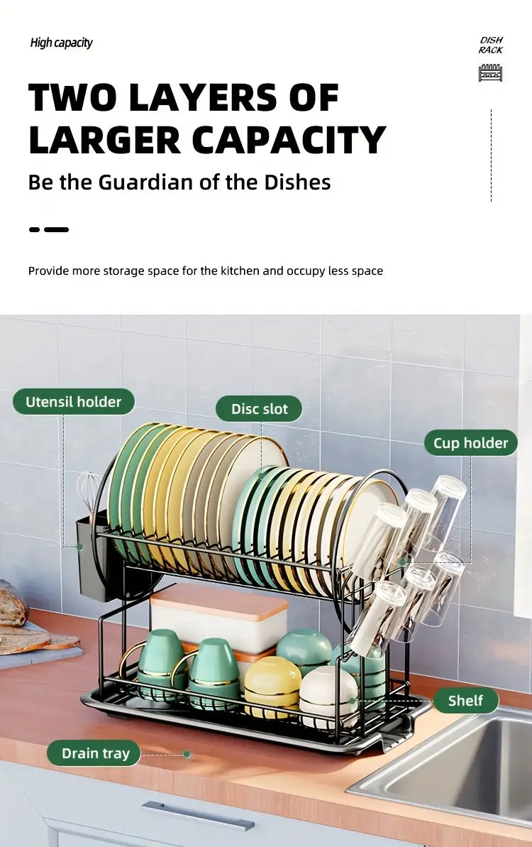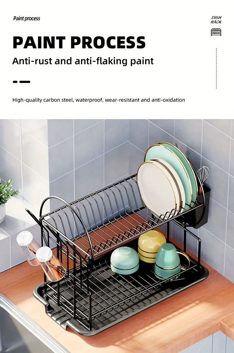 Multifunctional 2-Tier Dish Drying Rack with Utensil Holders and Drainboard for Kitchen Countertop