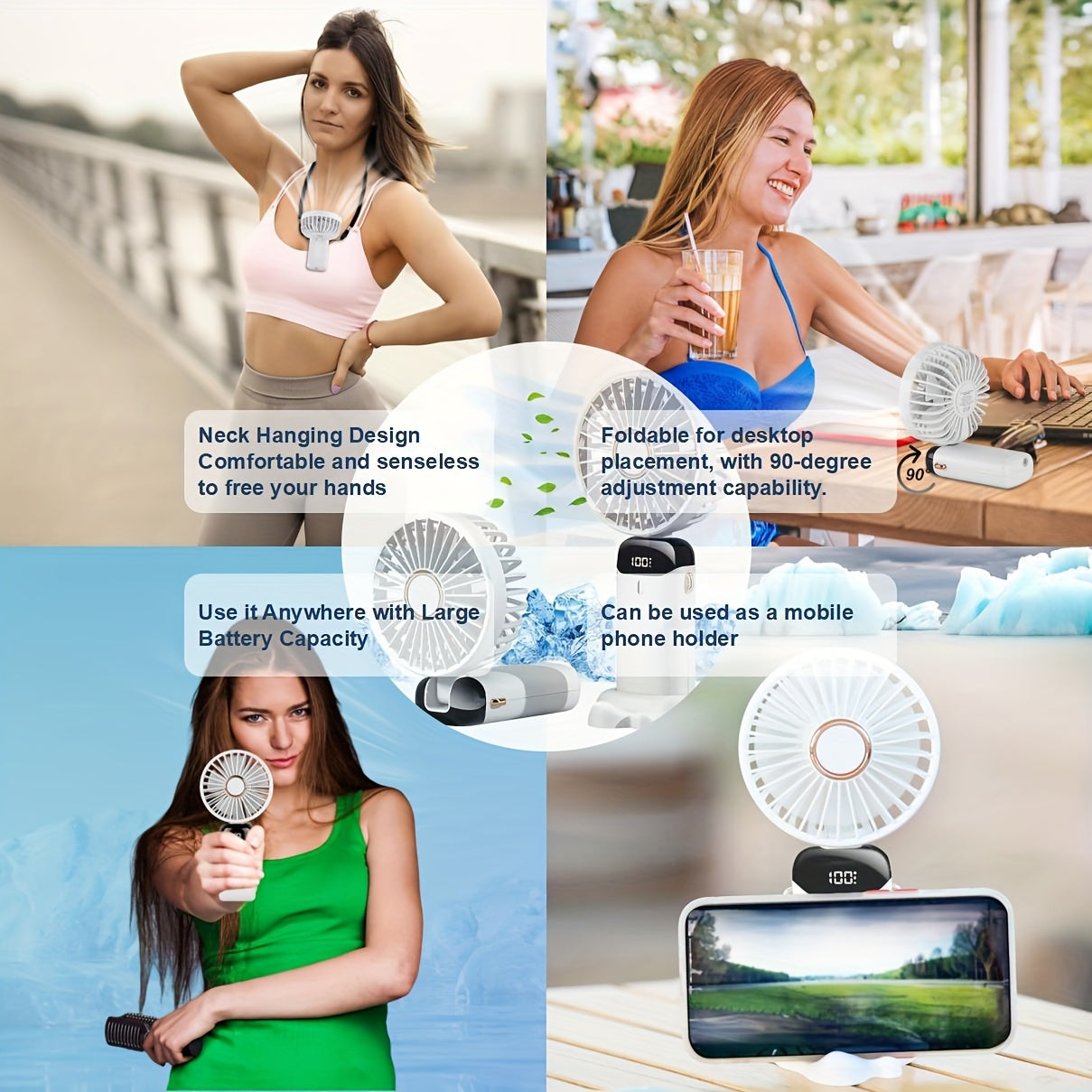 Portable Handheld Fan with Digital Display 5 Speed USB Rechargeable Lightweight