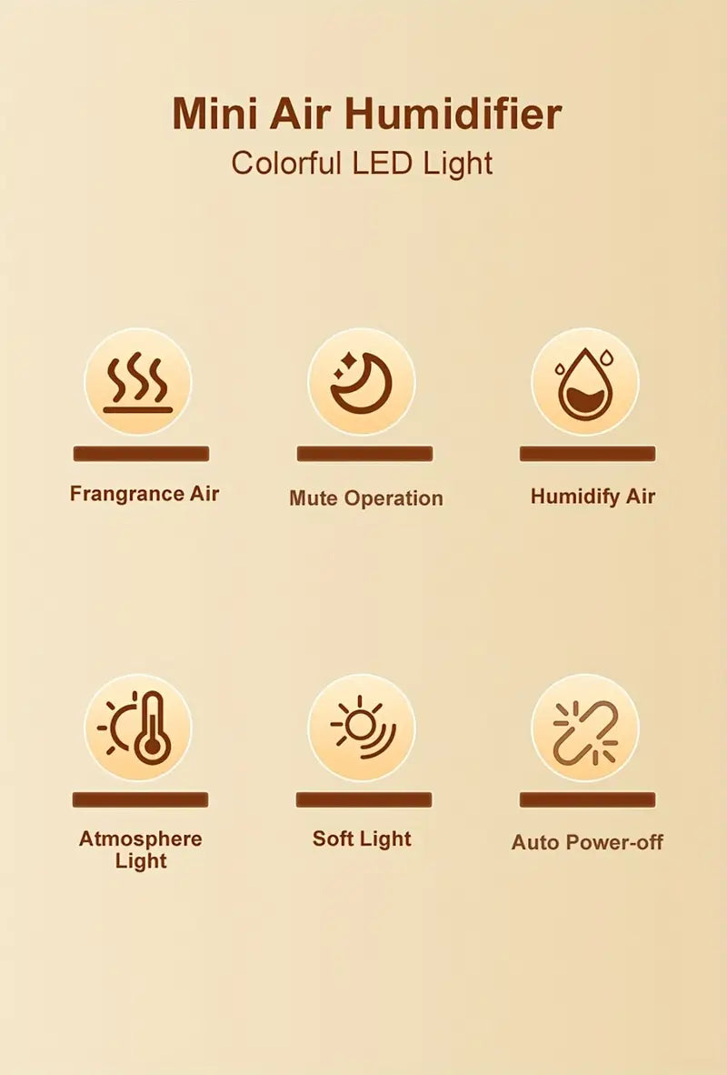 Humidifier with 150ml Capacity, 7-Color Adjustable Light, Wood Grain Finish, USB Powered for Desktop and Room Use