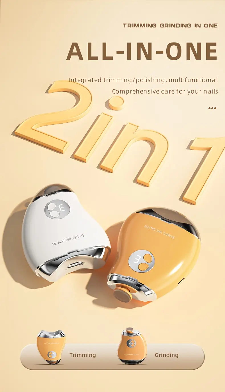 Electric Nail Clipper and Grinder 2-in-1 Rechargeable USB Charging for Adults