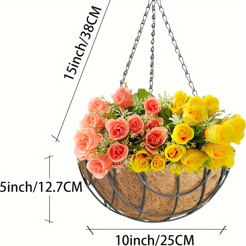 Set of 2 Metal Hanging Plant Baskets 10-Inch Round Wire with Coconut Liners for Outdoor Garden Decor