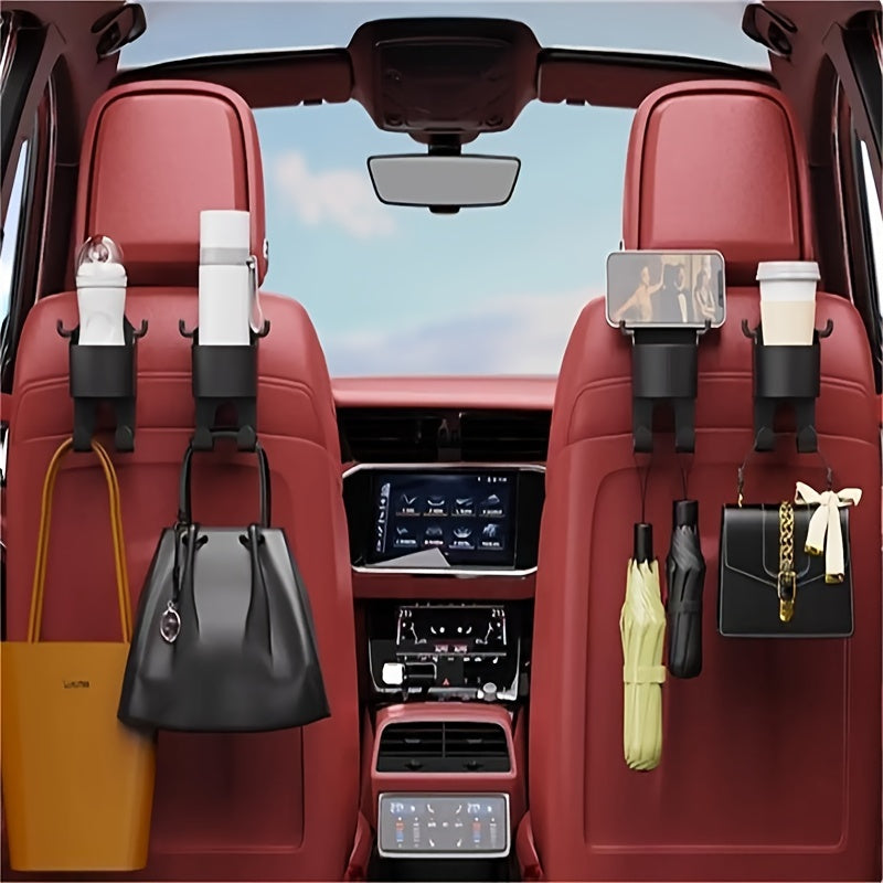 2 Pack Car Seat Back Hooks with Built-In Cup Holders Auto Interior Organizer