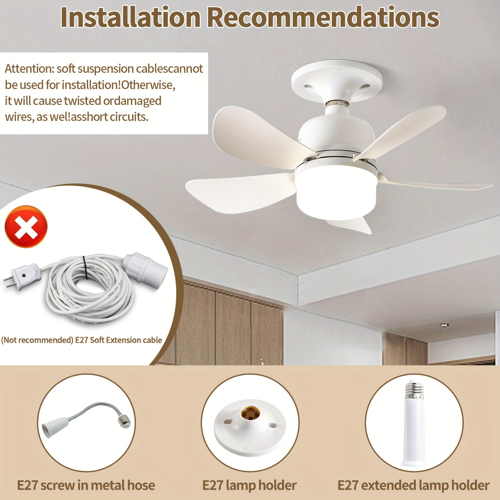 Set of 2 White Smart Ceiling Fans with LED Light, Remote Control, 3-Speed Adjustable