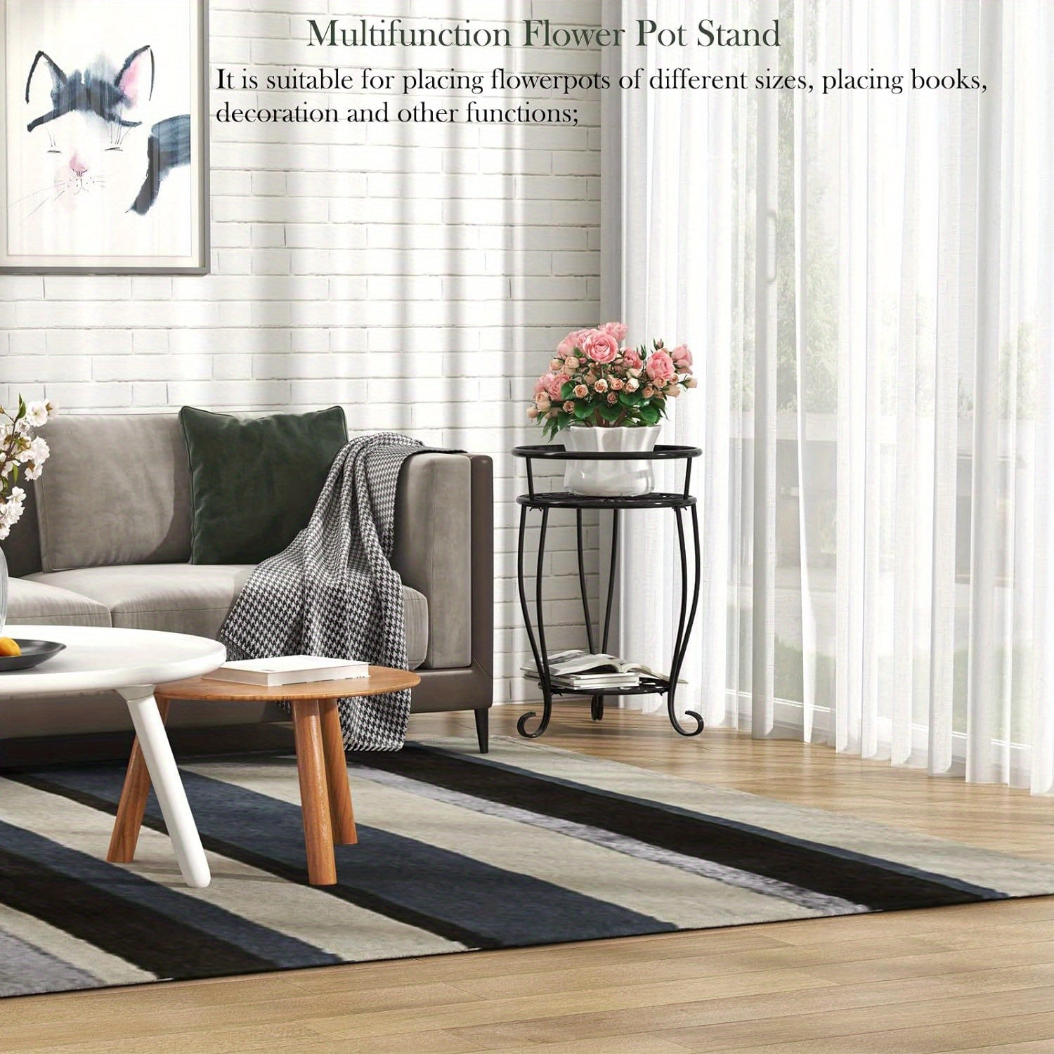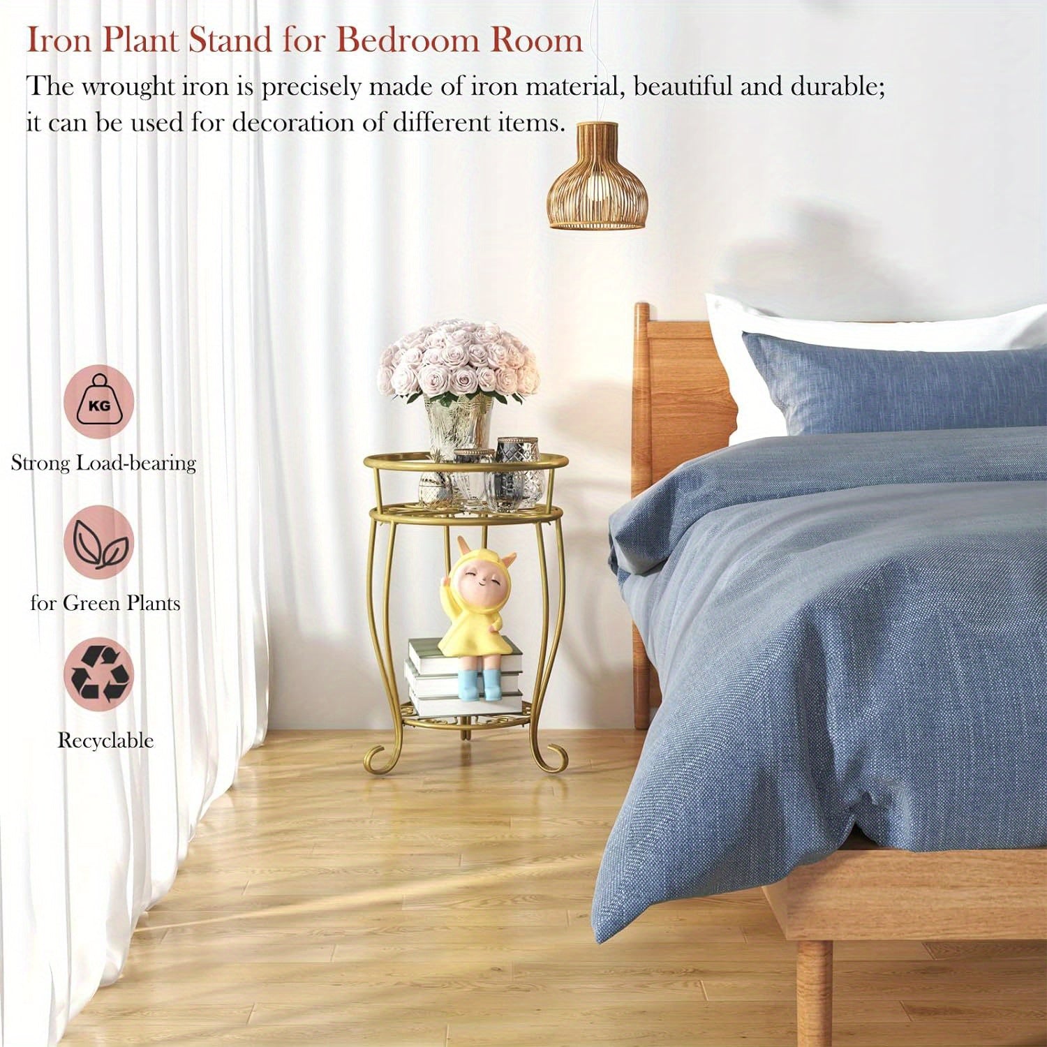 Metal Plant Stand 2-Tier Round Shelves Golden Finish Rustproof Wrought Iron 49.2cm