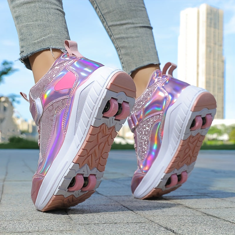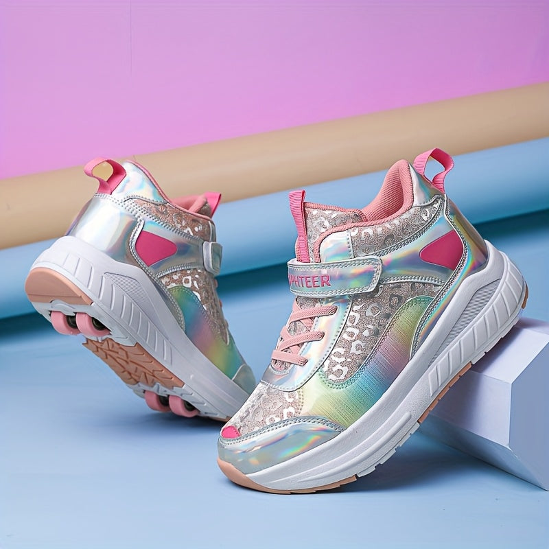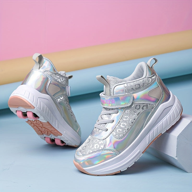 Kids Mid-Top Walking Shoes with Detachable Roller Skates for Boys and Girls