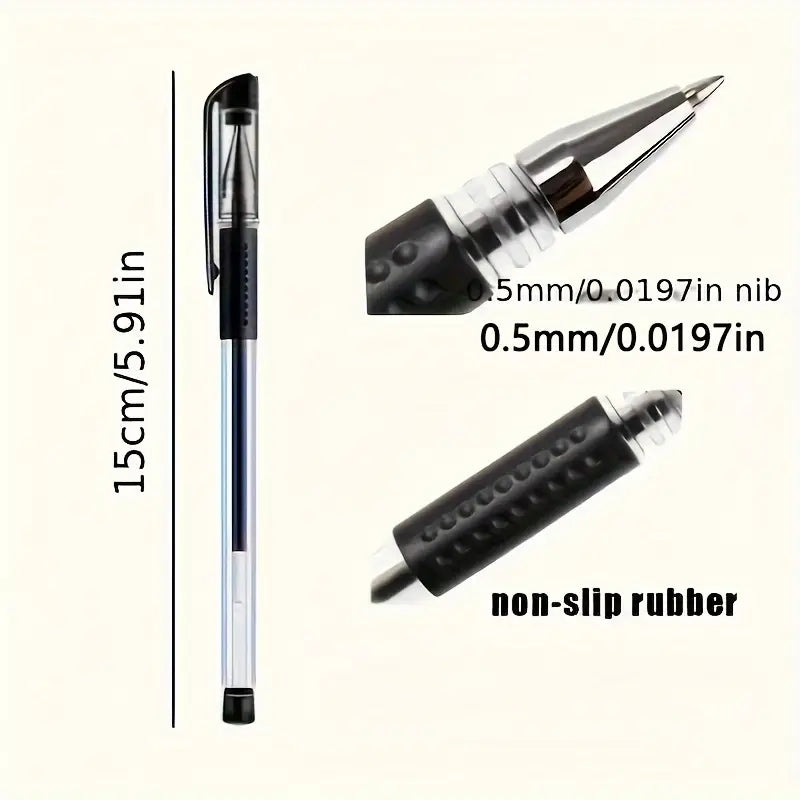 24 Ergonomic Glossy Gel Pens Set 0.5mm Fine Tip Black Blue Red for School Office