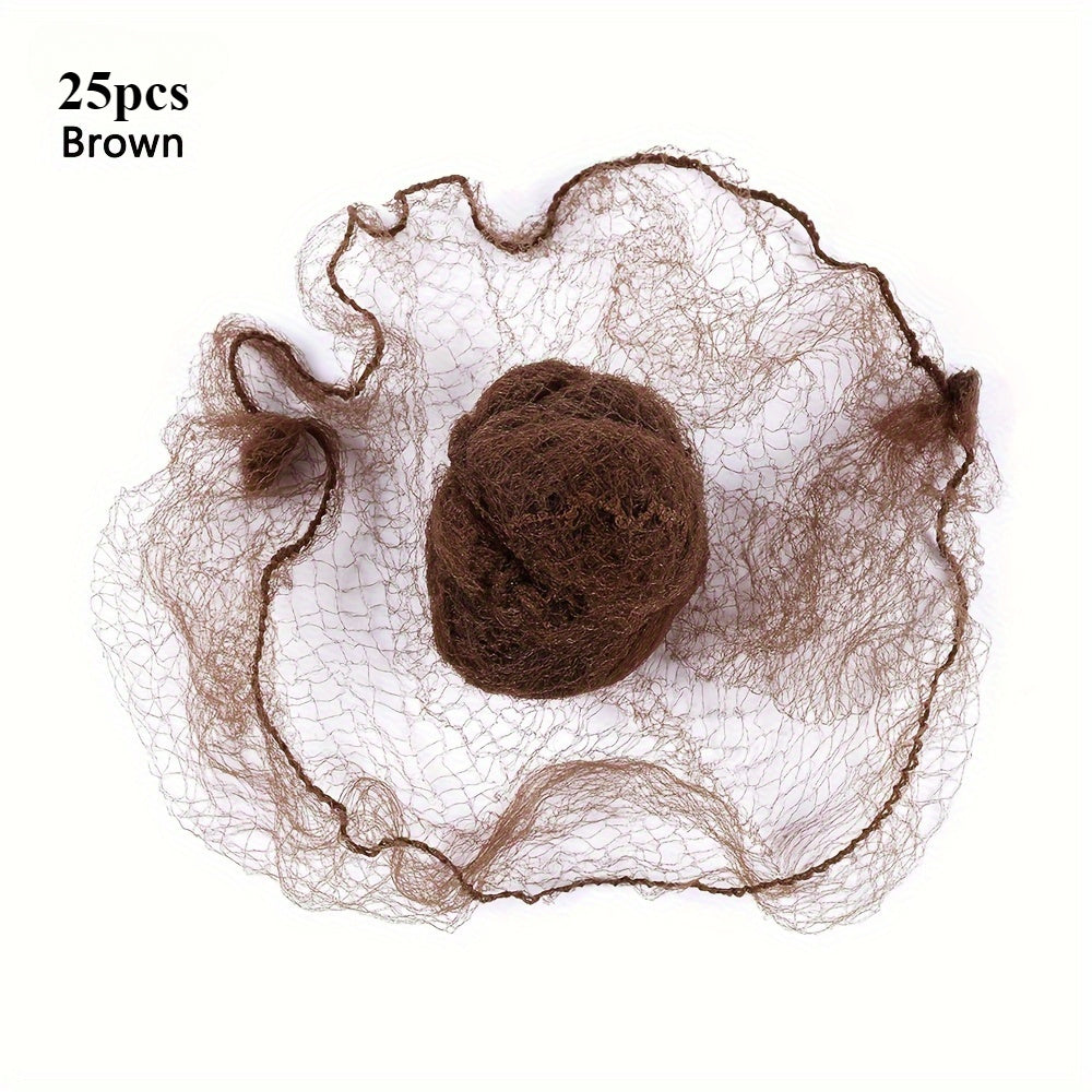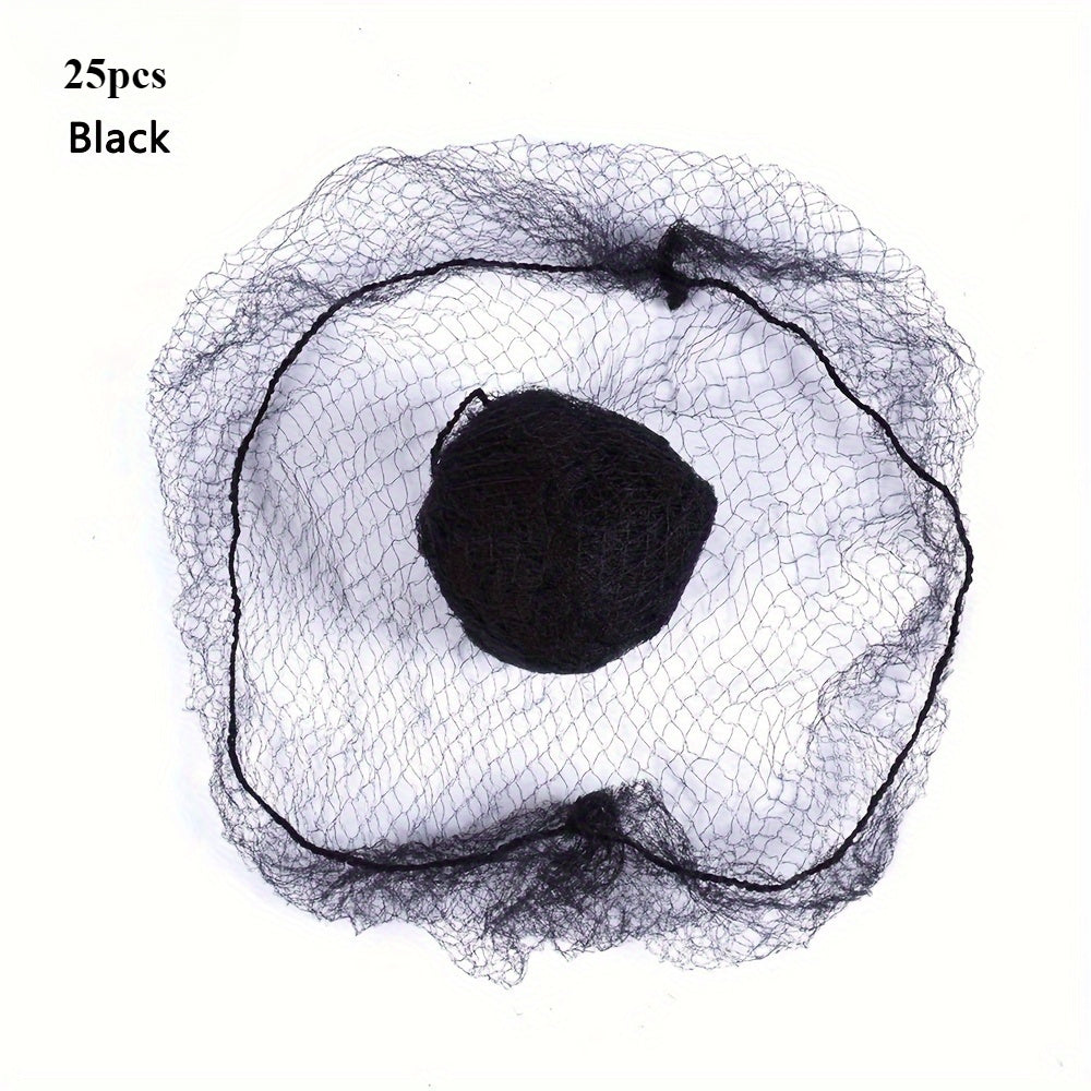25-Pack Disposable Nylon Hairnets for Dance and Performance with Elastic Edge Mesh