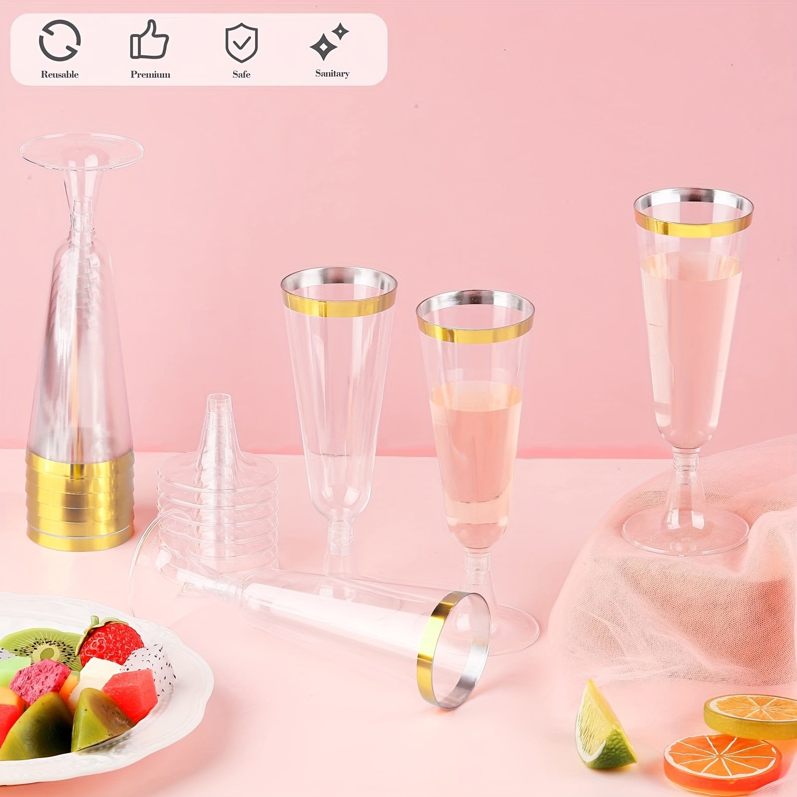 25 Pack Gold Plastic Champagne Flutes 5 Ounce Disposable Party Glasses