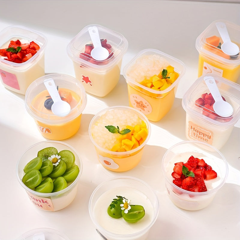25 Plastic Cups with Lids and Spoons for Desserts Puddings and Yogurt