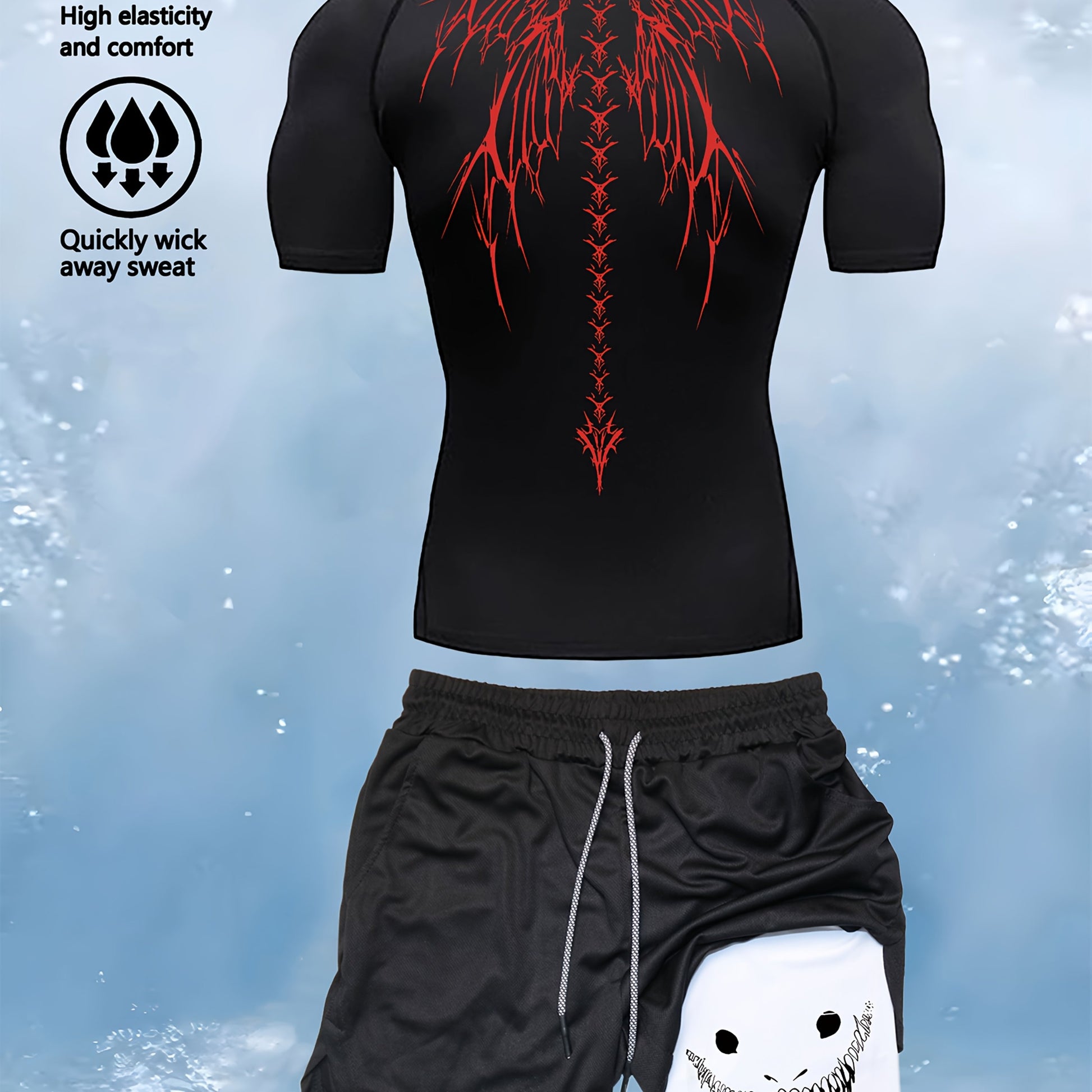 Men's Athletic Fitness Set Shorts and T-Shirt Quick-Dry Knit Fabric for Running Training Hiking