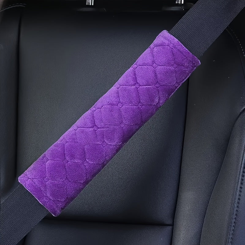 2Pcs Soft Plaid Embroidered Car Seat Belt Covers - Comfortable Shoulder Protectors