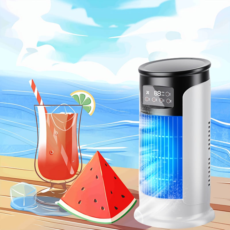 3-in-1 Portable USB Air Conditioner Humidifier Fan with Ambient Light Compact Digital Display