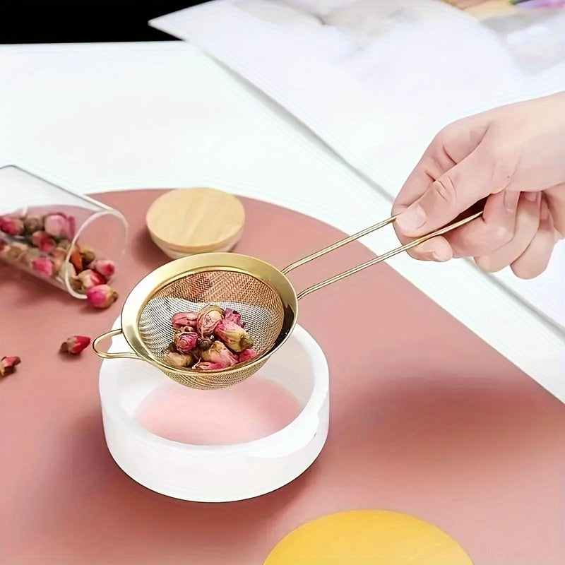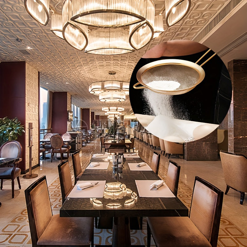 3-Piece Golden Stainless Steel Fine Mesh Kitchen Strainer Set for Baking and Cooking