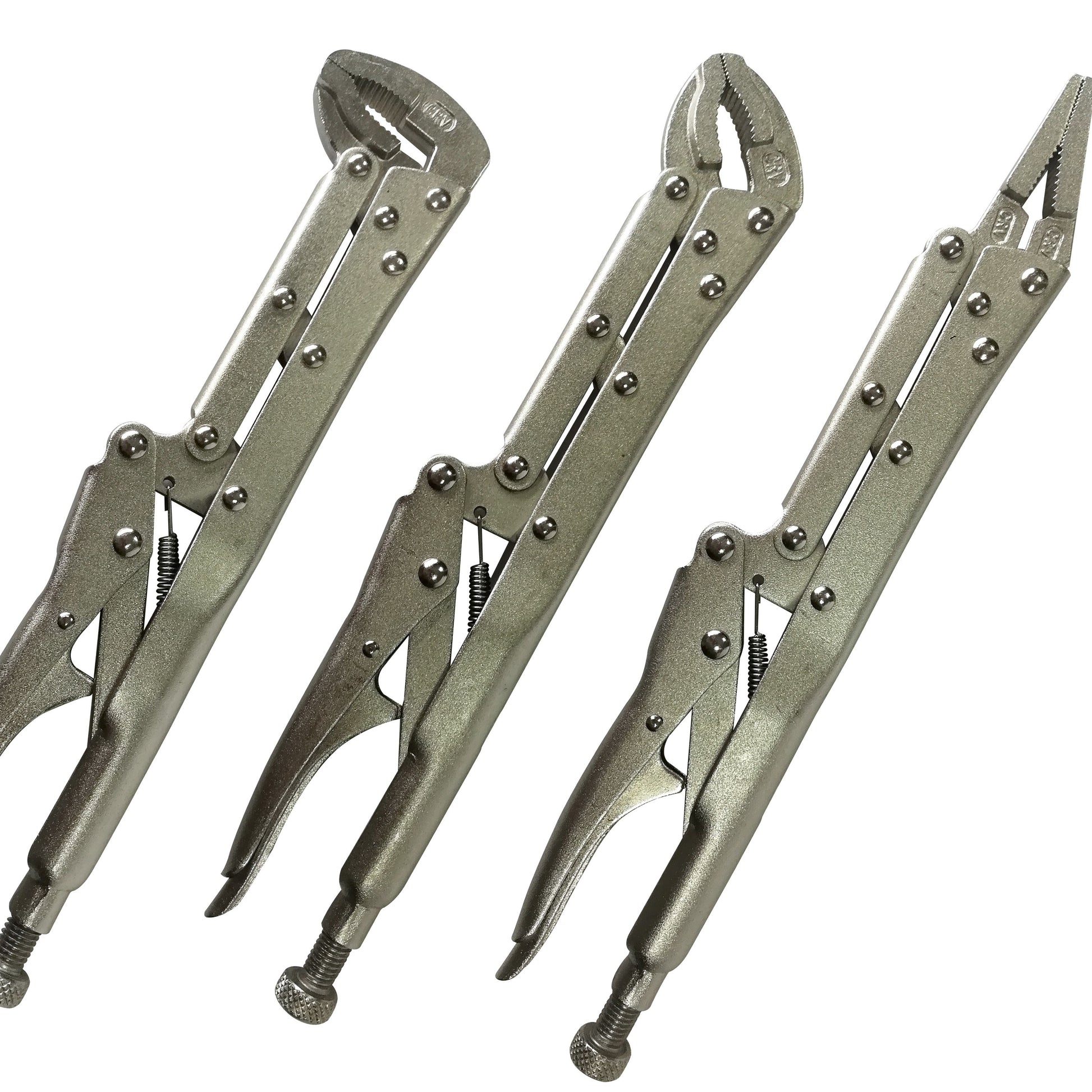 3-Piece Locking Pliers Set 30.48cm Curved & Straight Jaws Clamping Tools