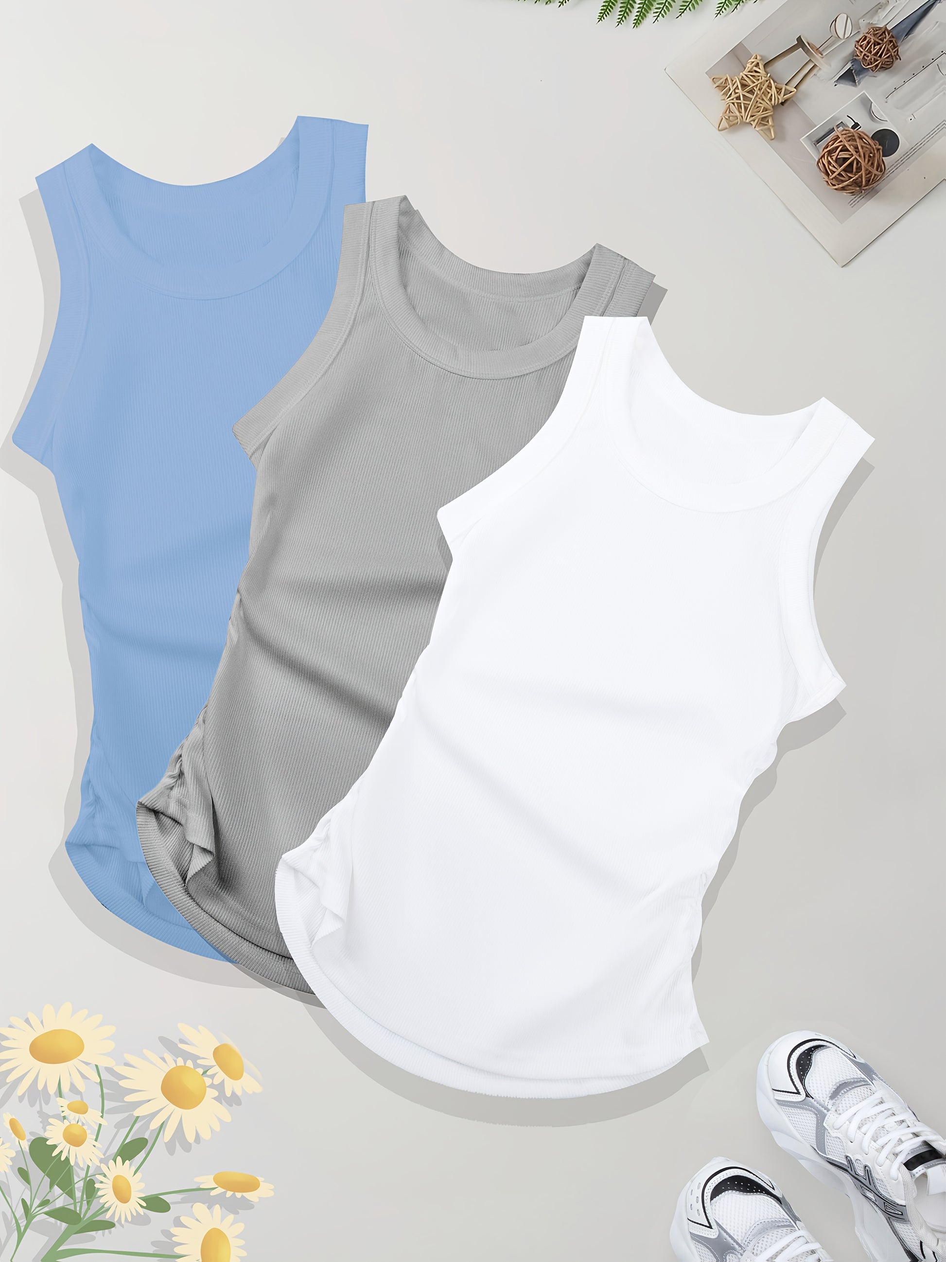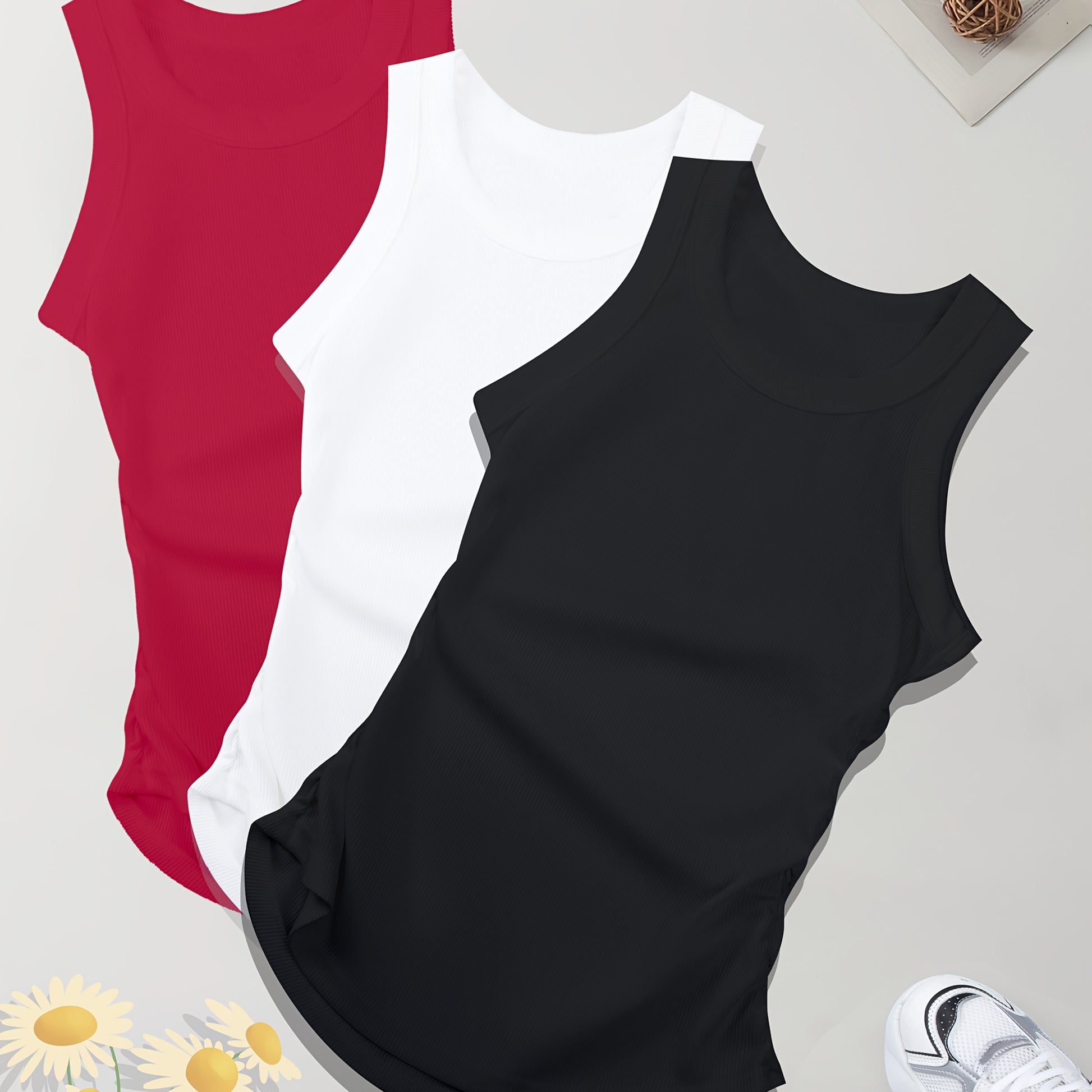 Women's Sleeveless Tank Tops Set 95% Polyester 5% Spandex for Summer Workout Casual Black Gray Red