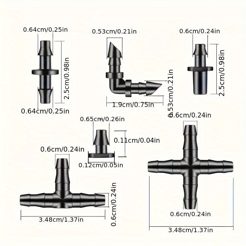 300pcs Drip Irrigation Kit 1/4 Inch Barbed Connectors for Gardens Greenhouses