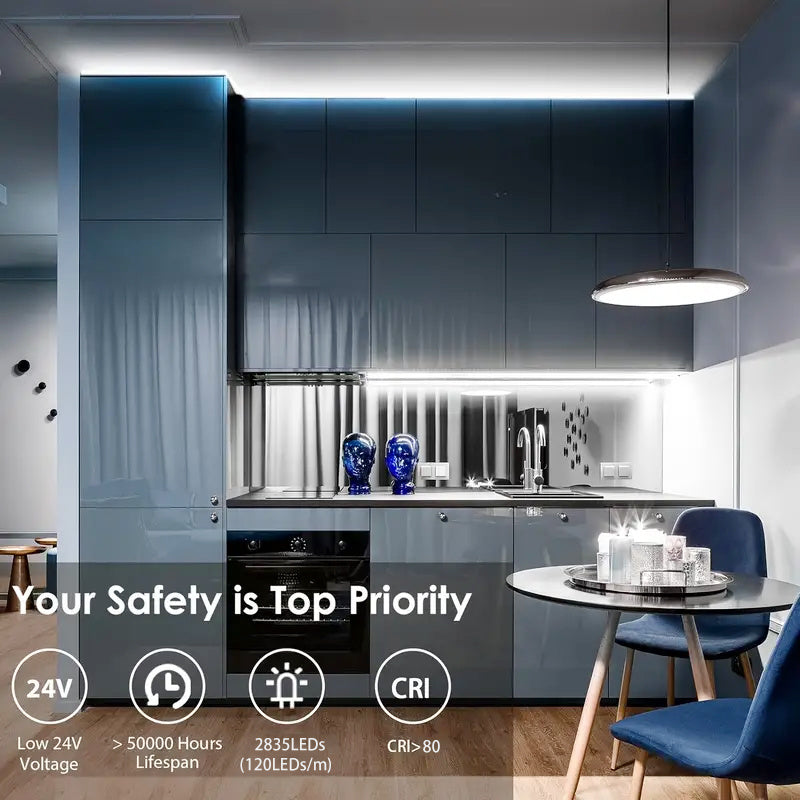 32.8ft LED Strip Lights 24V Warm Cold White Easy Install Adhesive Backing for Living Room Kitchen Bedroom