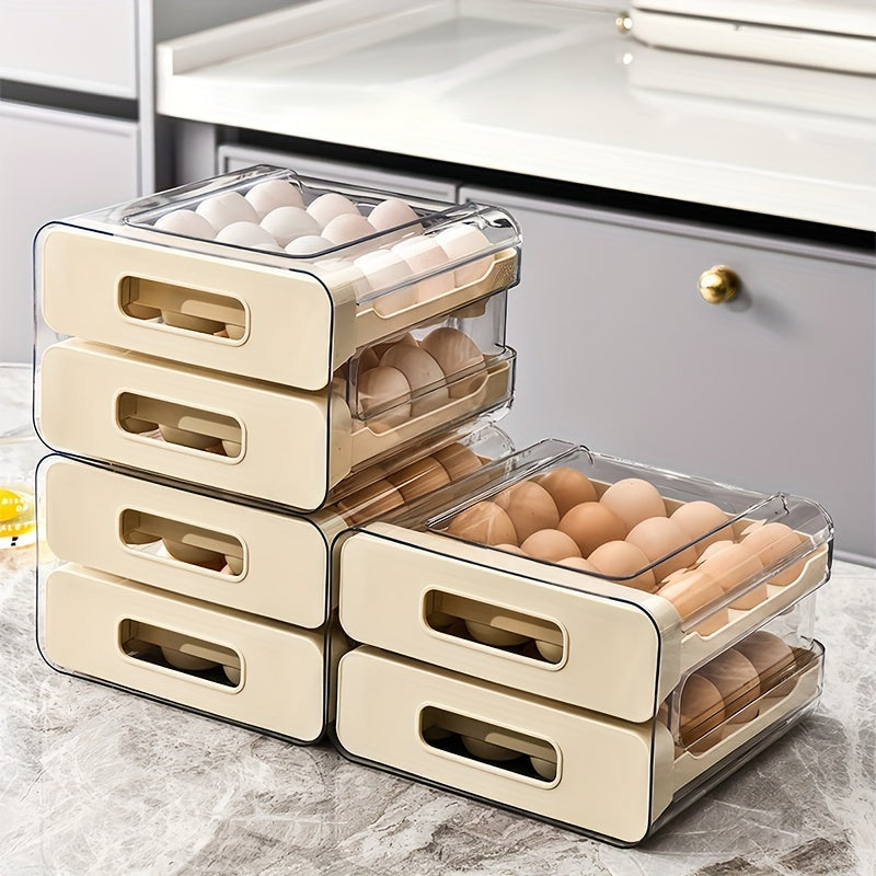 32-Grid Transparent Double-Layer Egg Storage Box Made of PET and PP for Refrigerator Organization