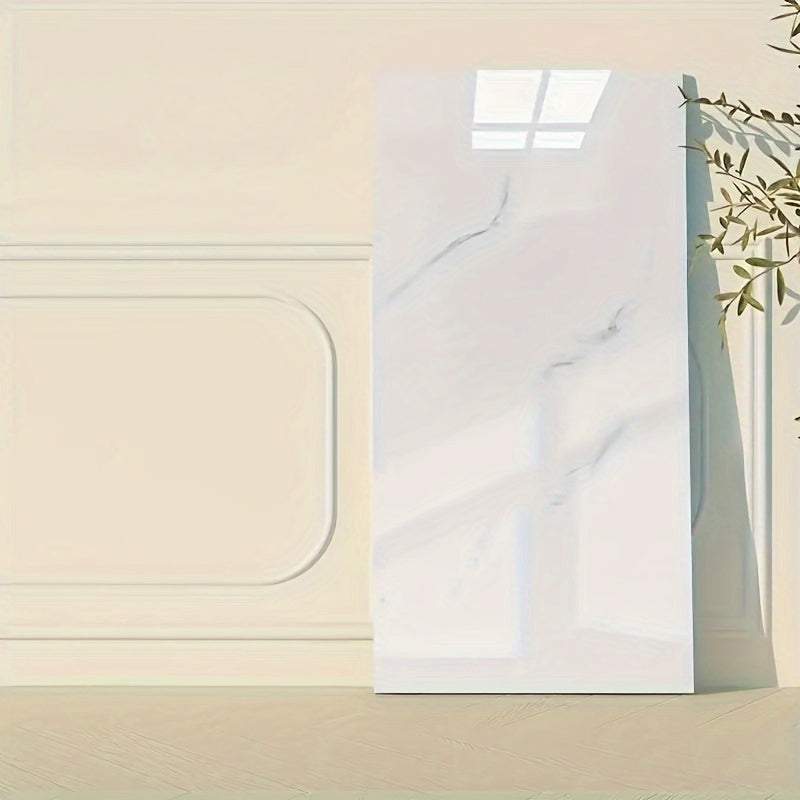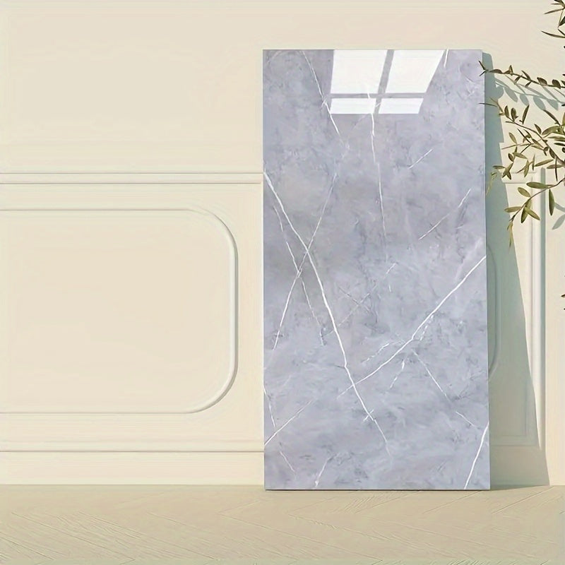 32 pieces of 3D marble pattern self-adhesive wall tiles, waterproof PVC, glossy finish, contemporary style, easy to apply and washable. Can be used for kitchen, living room, and bathroom
