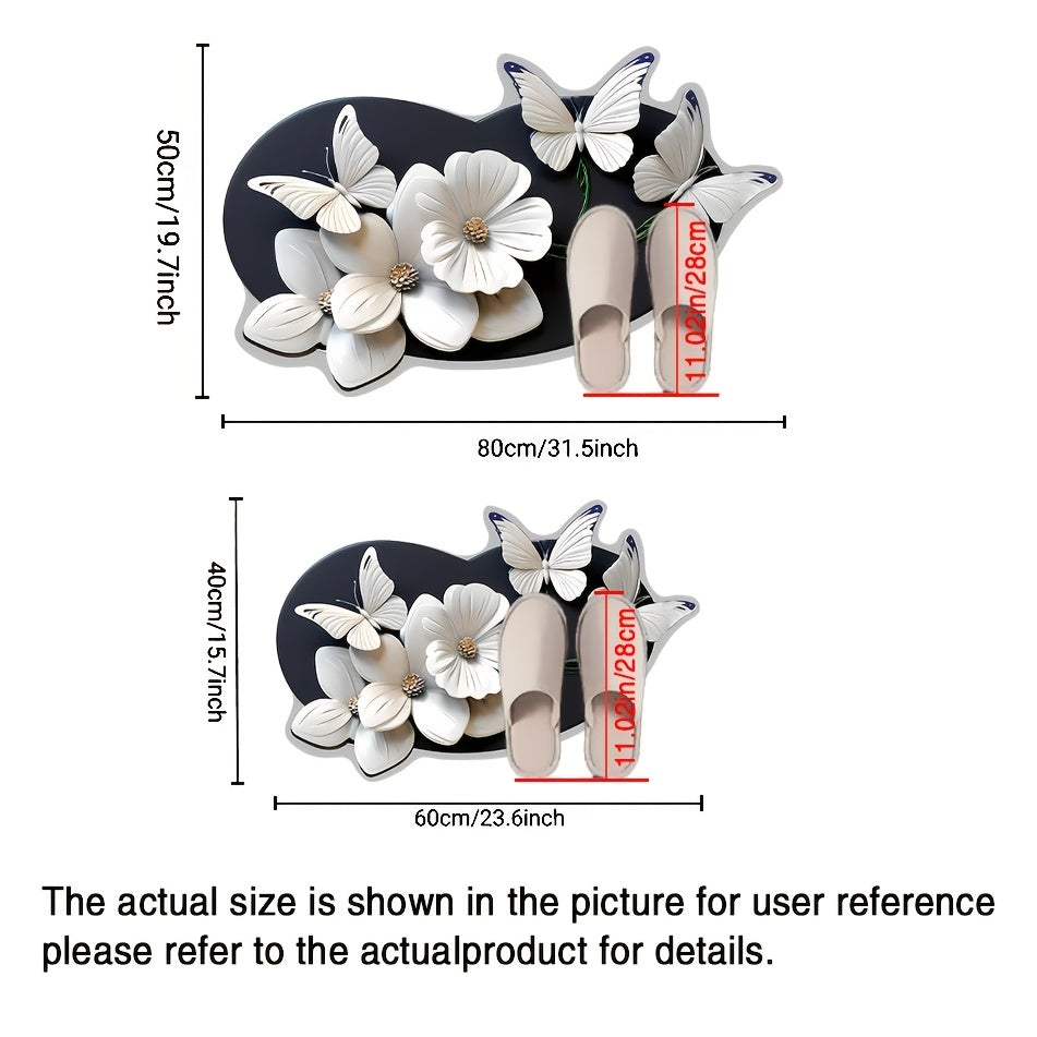 3D Flower Butterfly Pattern Non-Slip Bathroom Rug Water-Absorbent Quick-Drying Oval