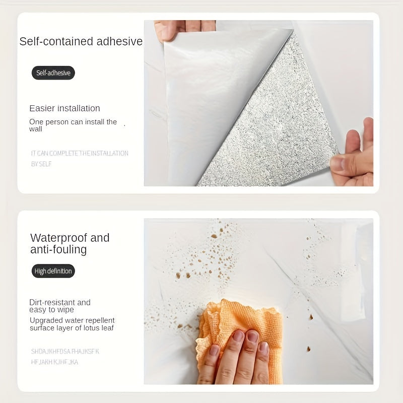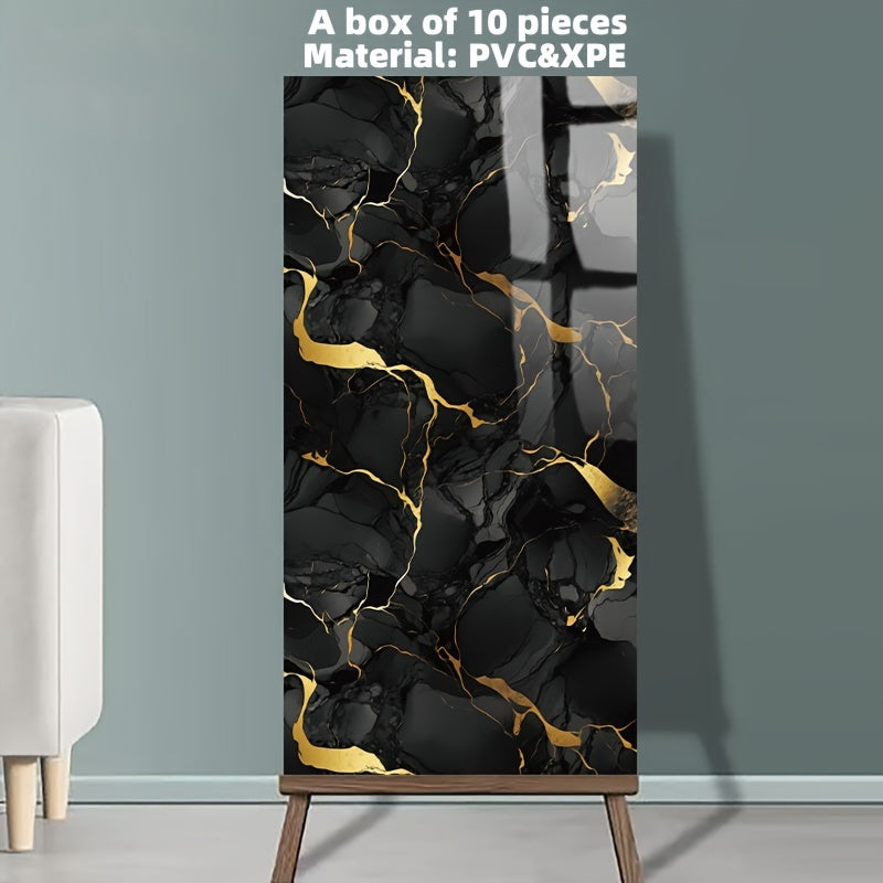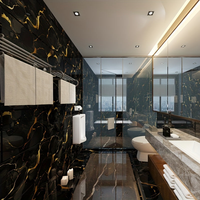 3D Marble Look Self-Adhesive PVC Wall Tiles Glossy Finish Bohemian Style for Home Decor