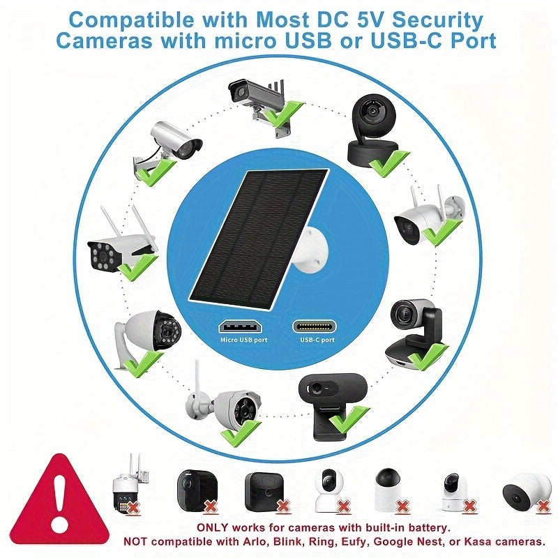 High-Efficiency Solar Panel Charger with USB and Micro USB Ports for Security Cameras and Wireless Doorbells