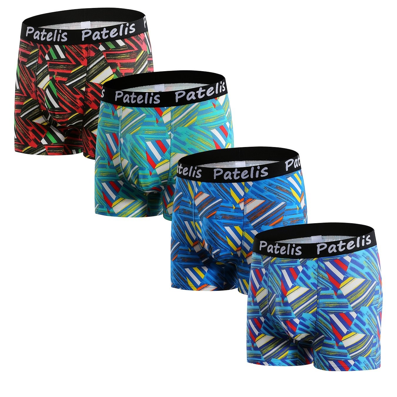 Men's Plus Size Boxer Briefs 4 Pack Breathable Quick Dry Cotton Geometric