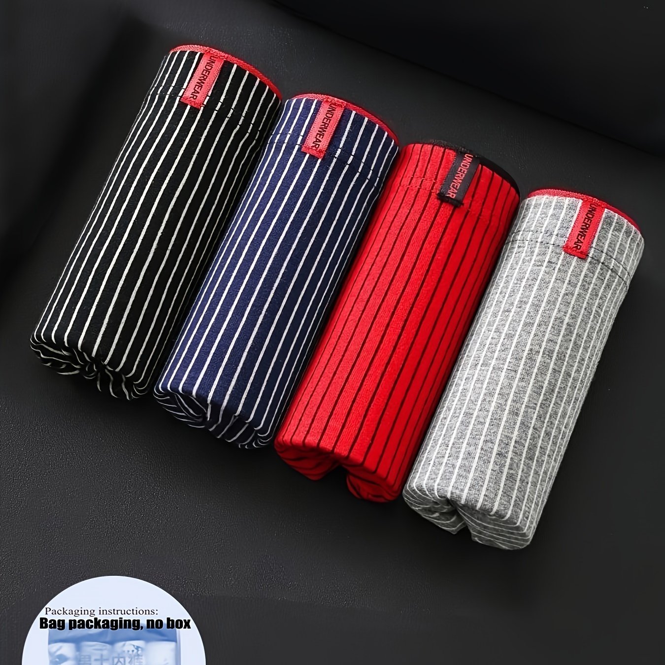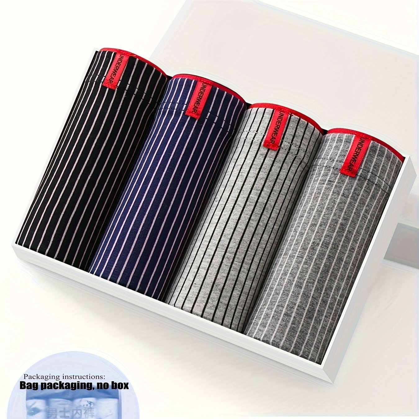 Men's Cotton Boxer Briefs 4-Pack Striped Breathable Soft Stretchy Shortie Underwear