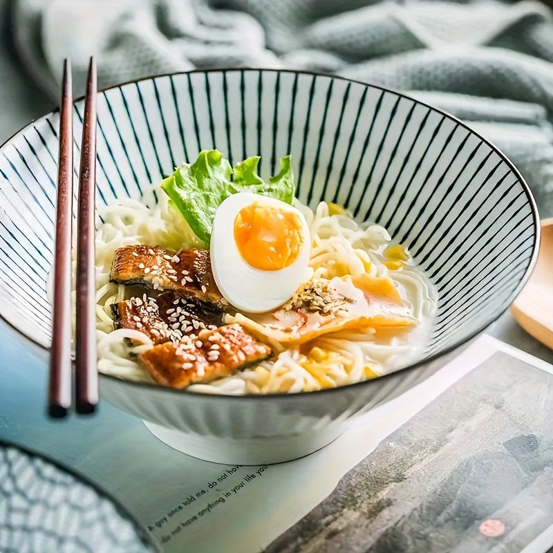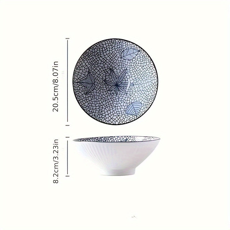 4-Piece Ceramic Bowl Set Blue and White Pattern Microwave Safe for Soup Ramen Pasta