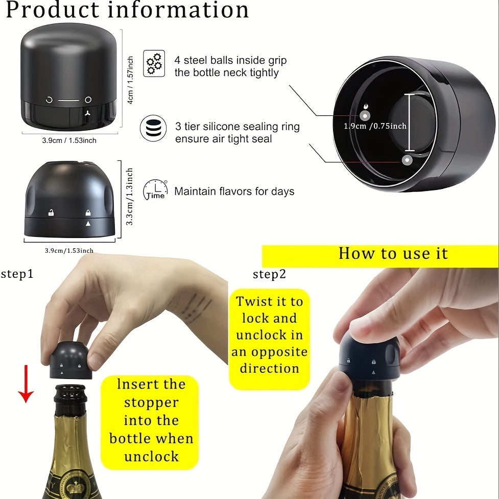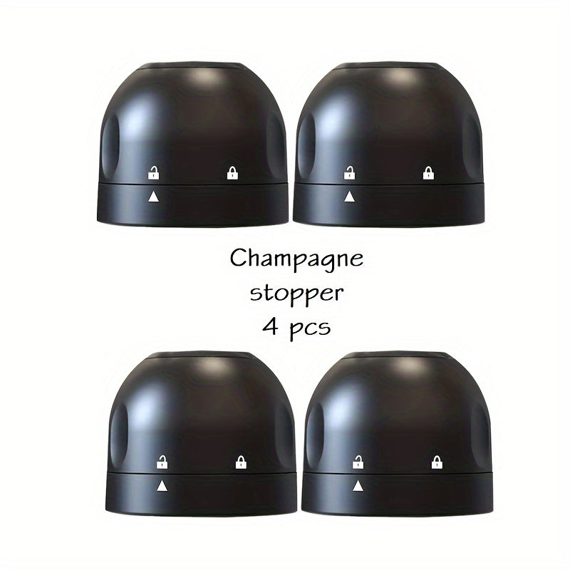 Set of 4 Black Leakproof Wine and Champagne Bottle Stoppers for Bars and Restaurants