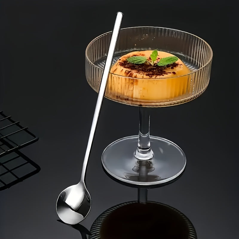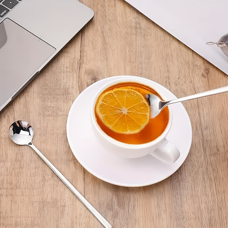 Set of 4 Silver Stainless Steel Coffee Spoons with Long Handles