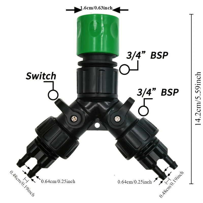 4-Way Drip Irrigation Adapter for 1/4 Inch Hose with Flow Control Valve Garden Watering System