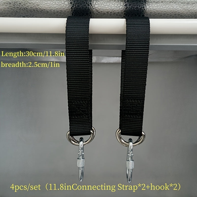 4pcs Outdoor Hanging Strap Set with Hooks Black Webbing for Camping Swings Sandbags Hammocks
