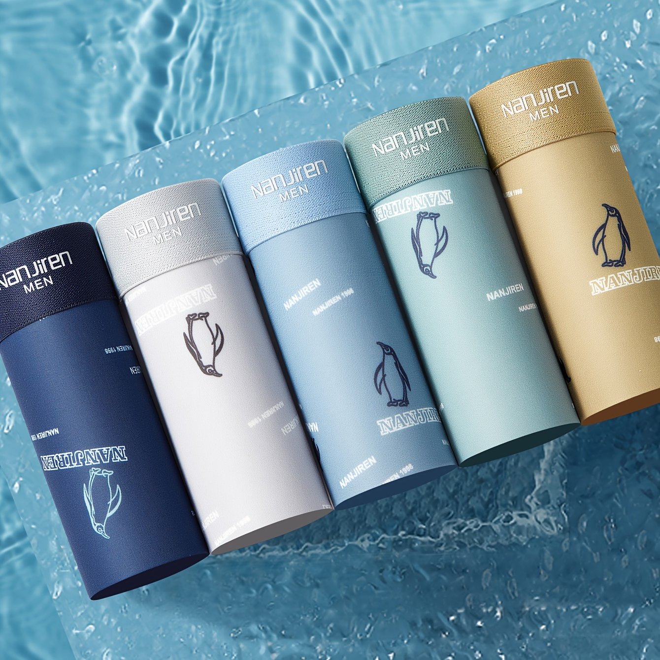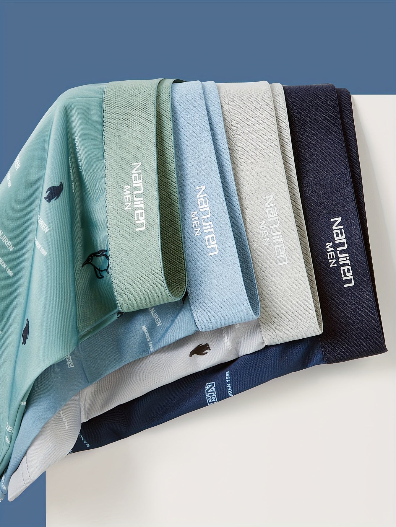 Men's Quick-Dry Penguin Print Underwear 5-Pack Shorts Polyester Spandex