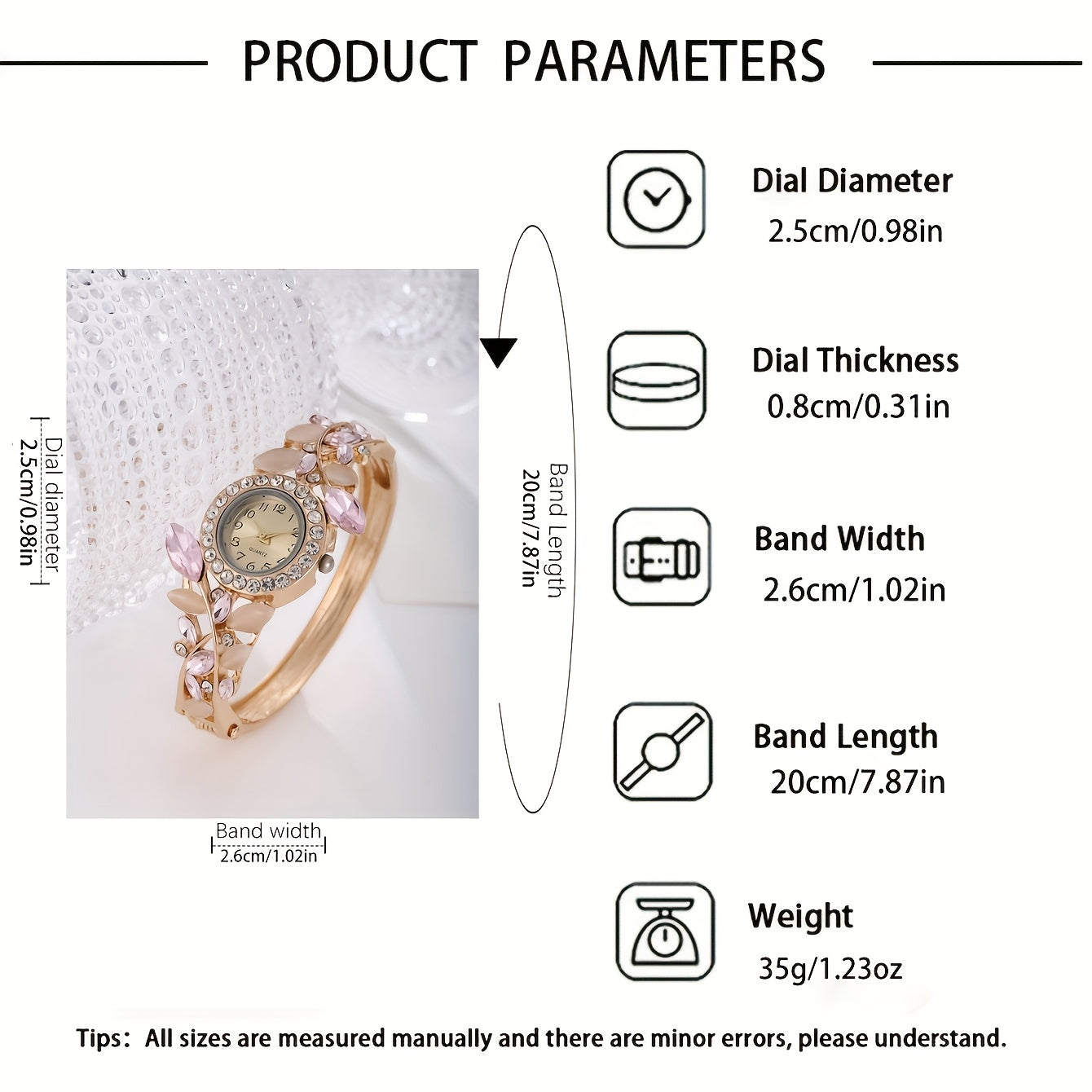 Women's Quartz Watch and Jewelry Set with Rhinestone Heart Necklace and Non-Alloy Band