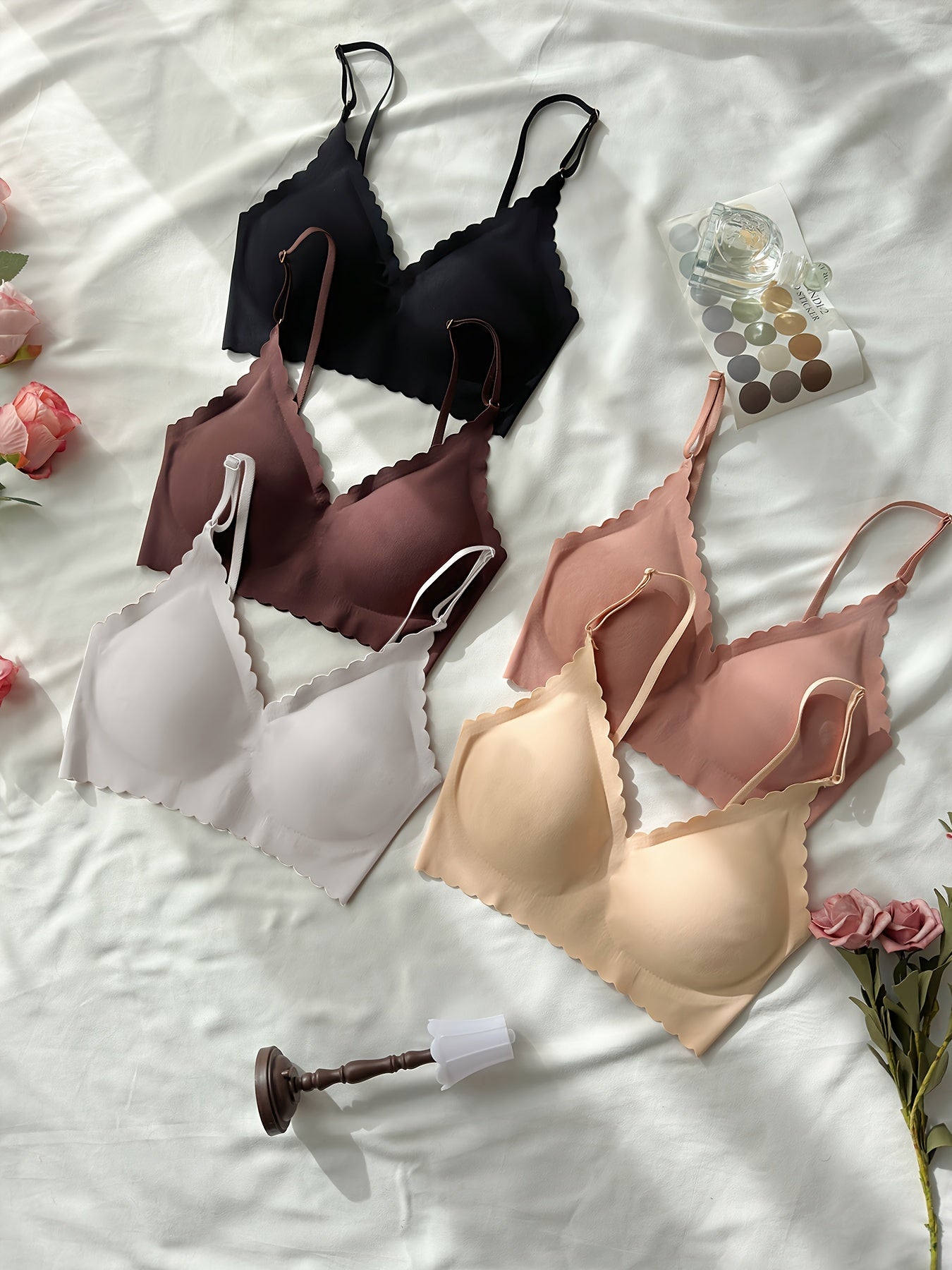 Women's Seamless Bralette with Removable Pads Wire-Free Solid Color Stretchy Nylon Spandex