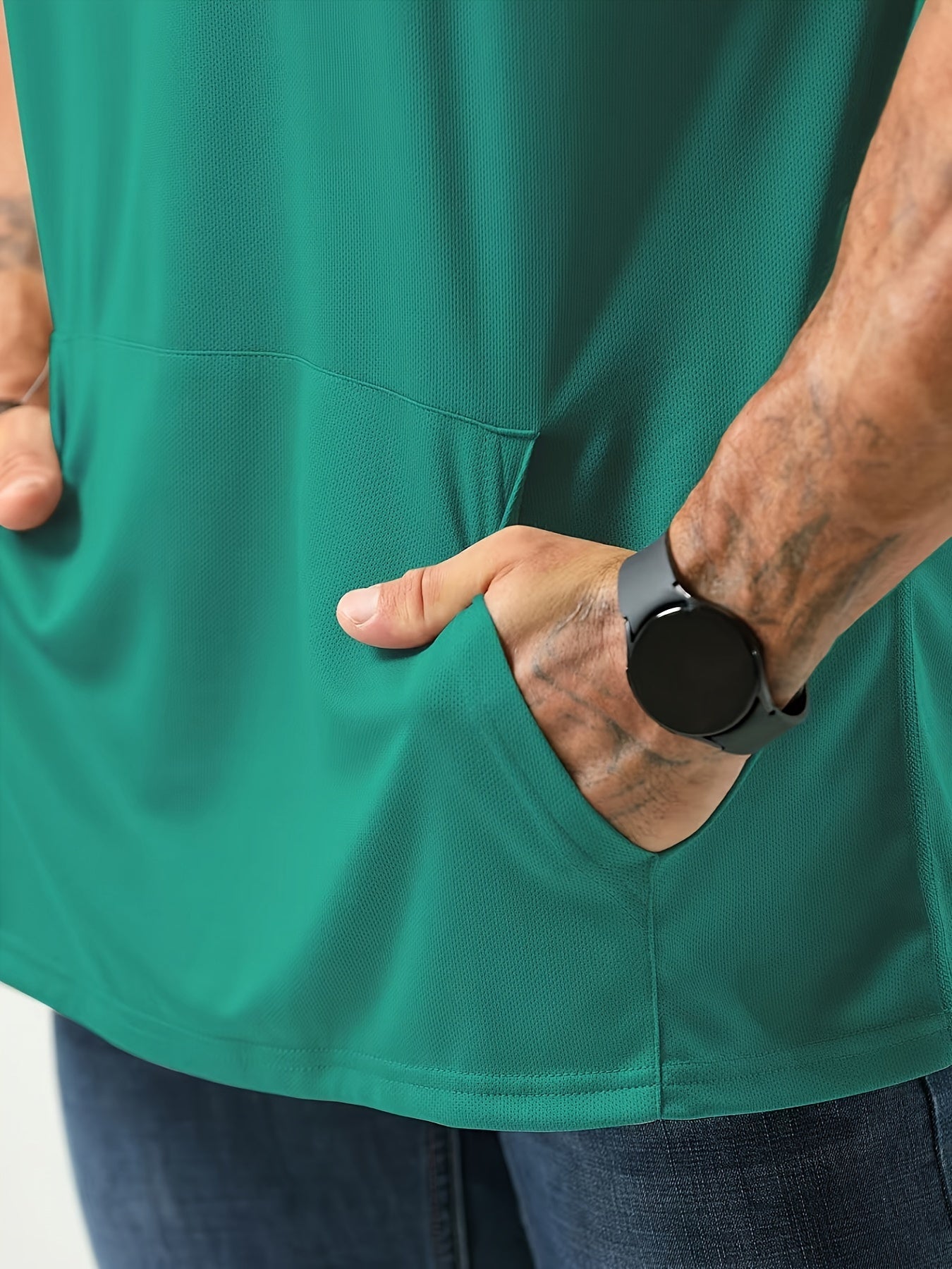 Plus-Size Men's Quick-Drying Hooded Sports T-Shirt Polyester Short Sleeve Casual