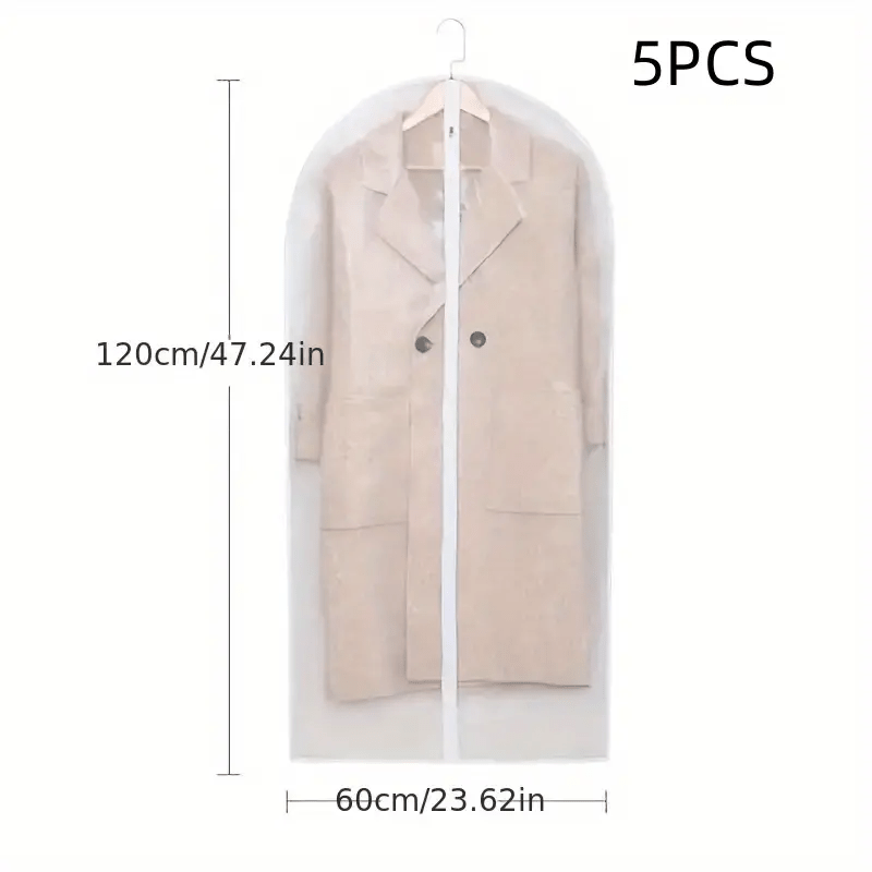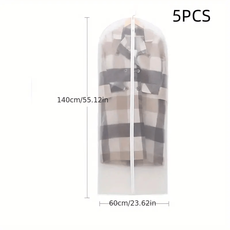 5pcs Transparent Clothes Storage Dustproof Bags Zipper Organizer for Wardrobe
