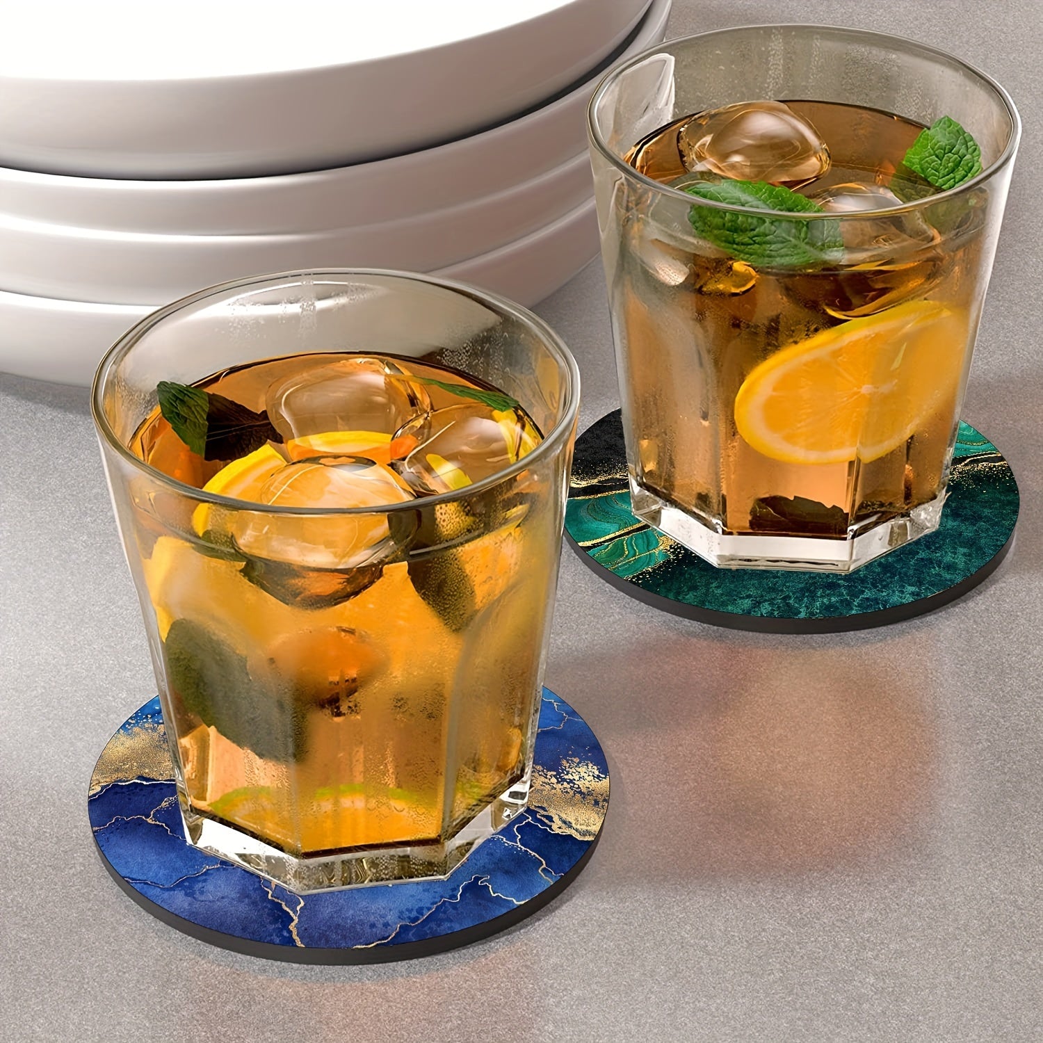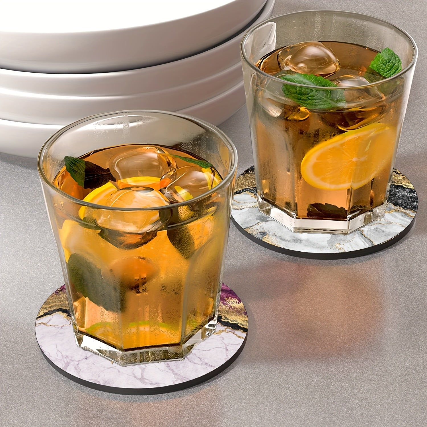 Luxury Gold Marbling Coasters Set 6 Absorbent Rubber Non-Slip 10.16cm Round