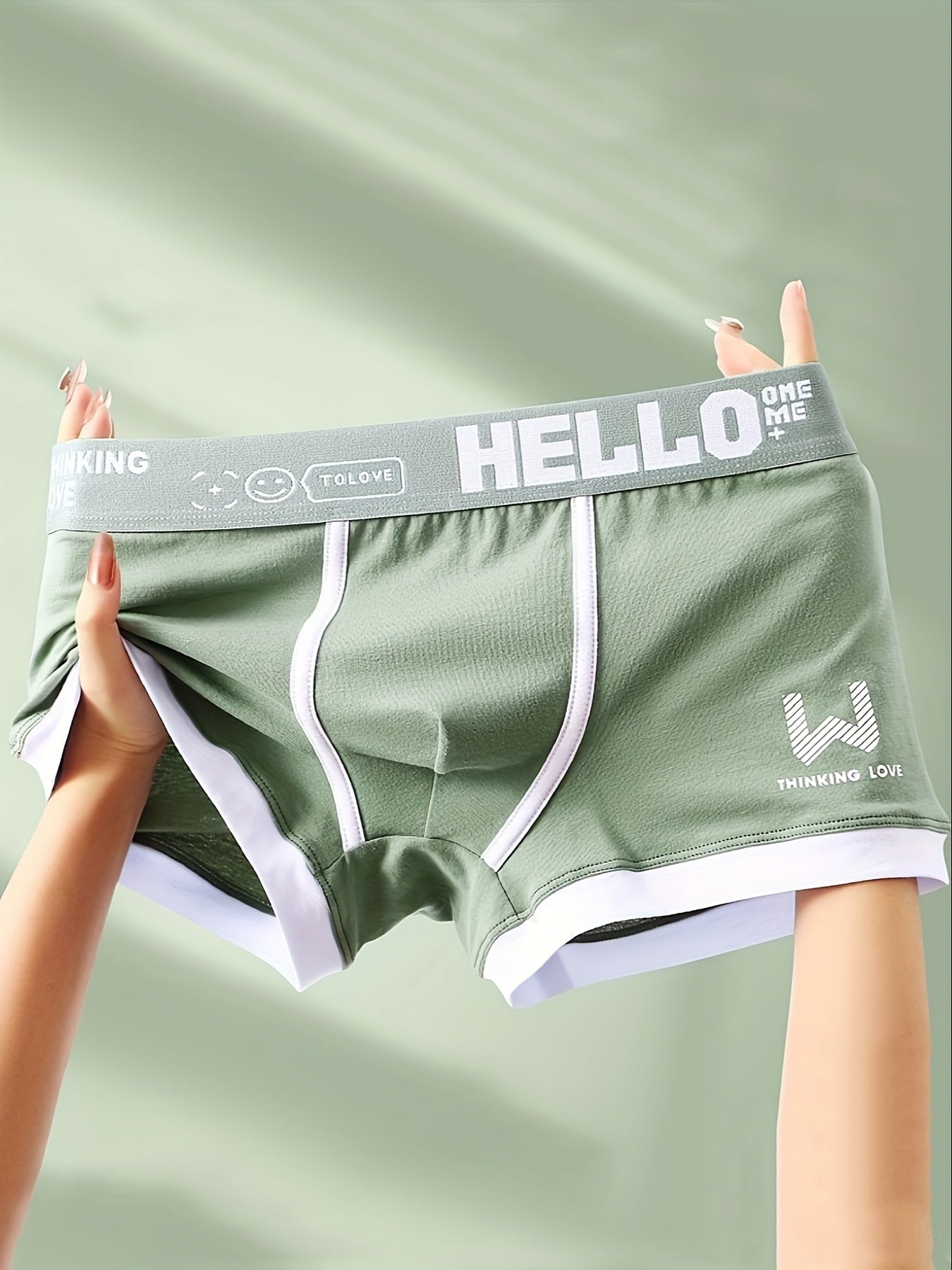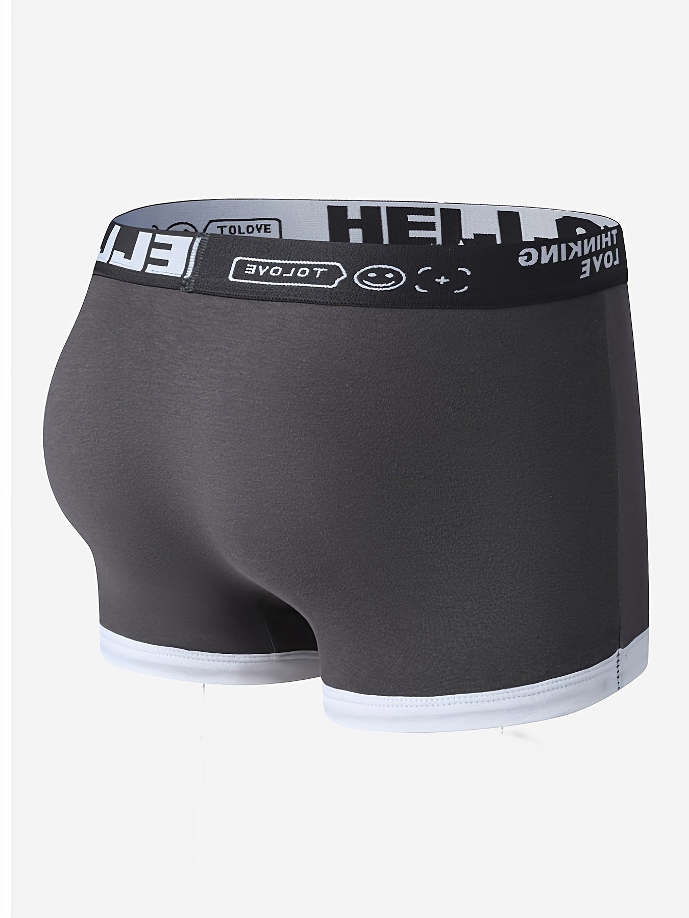 Men's Cotton Boxer Briefs Pack of 6 Alphabet Pattern Medium Stretch Knit Comfortable Underwear