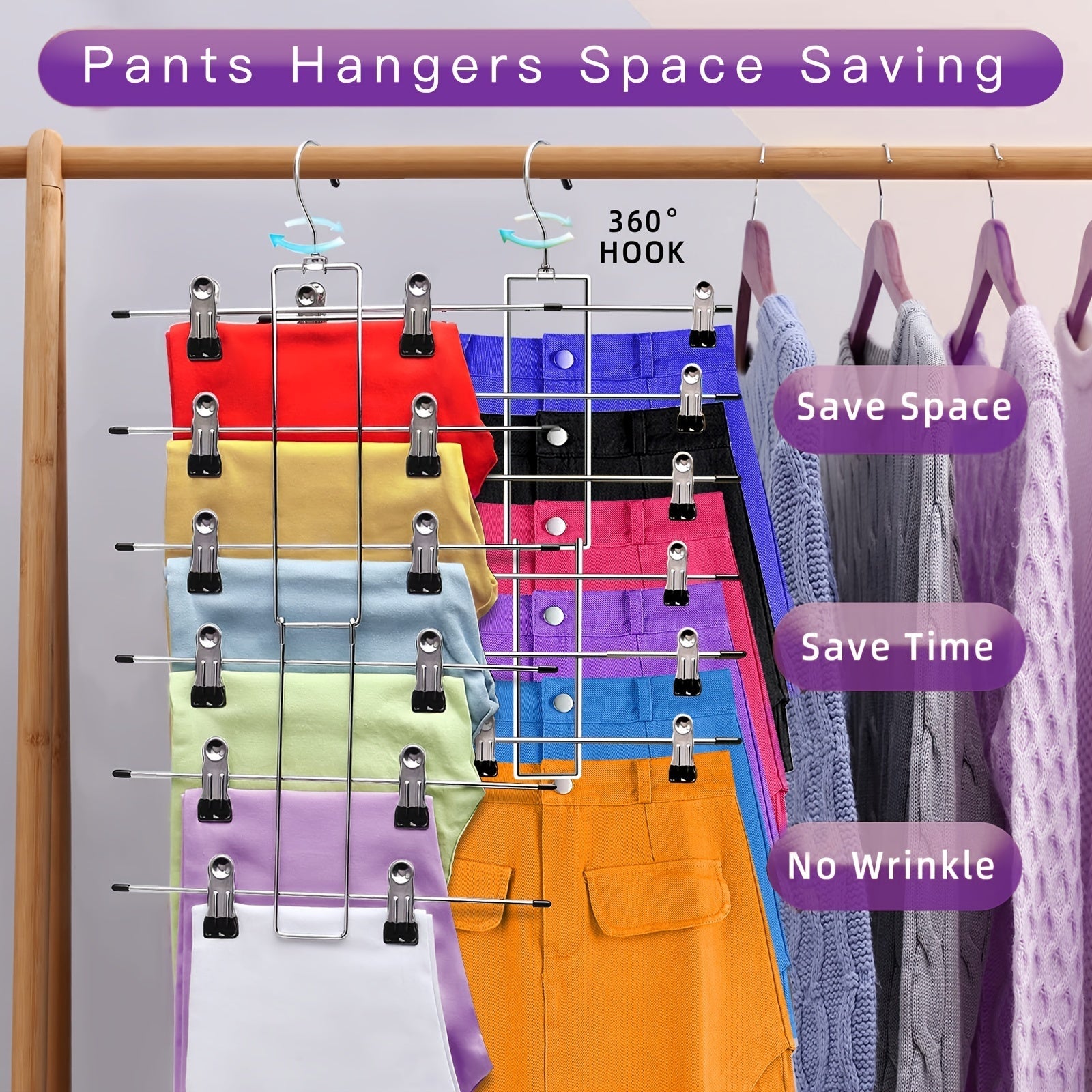 6-Tier Metal Clothes Hangers Set of 2 Non-Slip Durable Closet Organizer for Jeans Ties Scarves